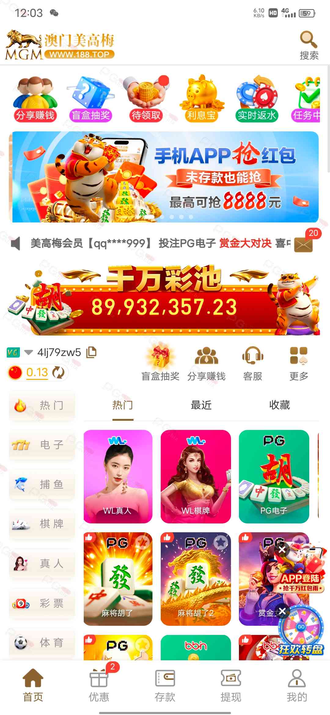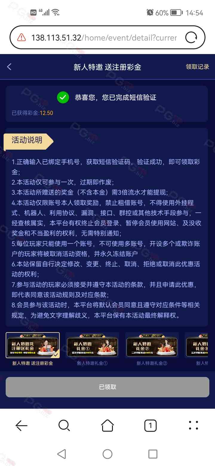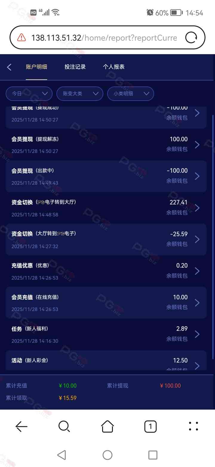 接到电话,注册去活动验证手机号领彩金,下载app还可以领一次,需要首冲才能玩,10元可以充值,我玩的麻1有点水,提了100,号里还有一百多,出款不到一分…