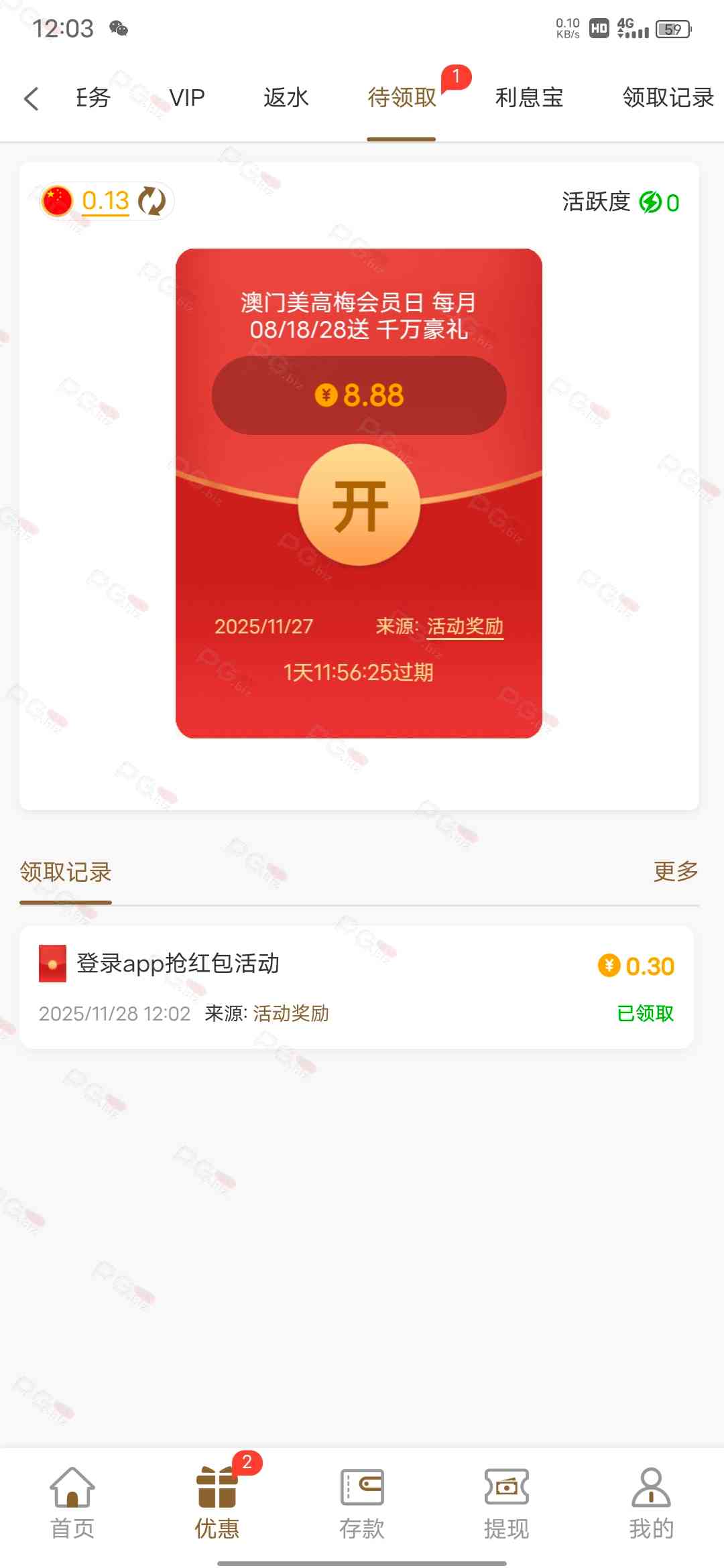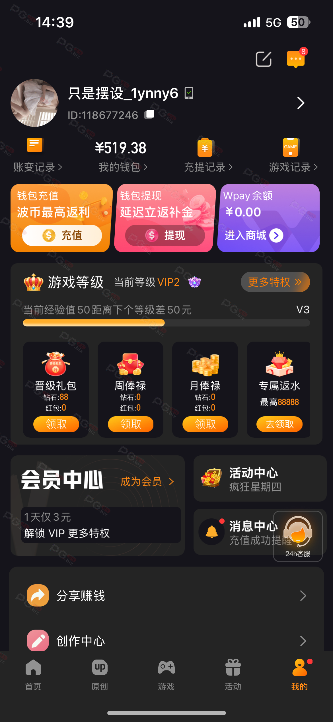 会员每月彩金回馈8/18/28号彩金,需要7天内有一次充值可以领取该阶段彩金,有号的老哥们可以去试水了