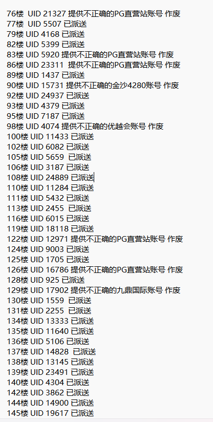 tw522121 124楼没有派送,我填的是登录账号,而且我也没看见银河优越会哪里有uid