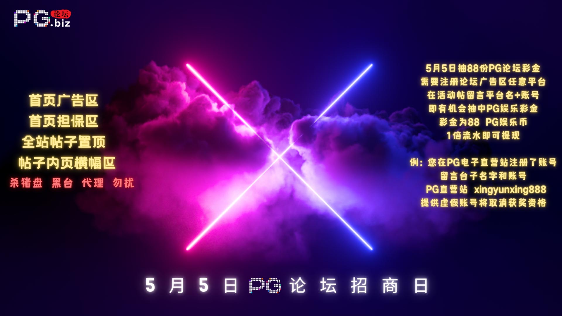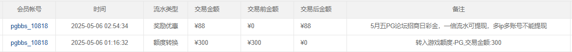 5月五PG论坛招商日彩金88已经全部派送完毕一倍流水可提现,多ip多账号不能提,已经派发在你们的PG娱乐账号里面了没填正确账号的就别来扯皮了