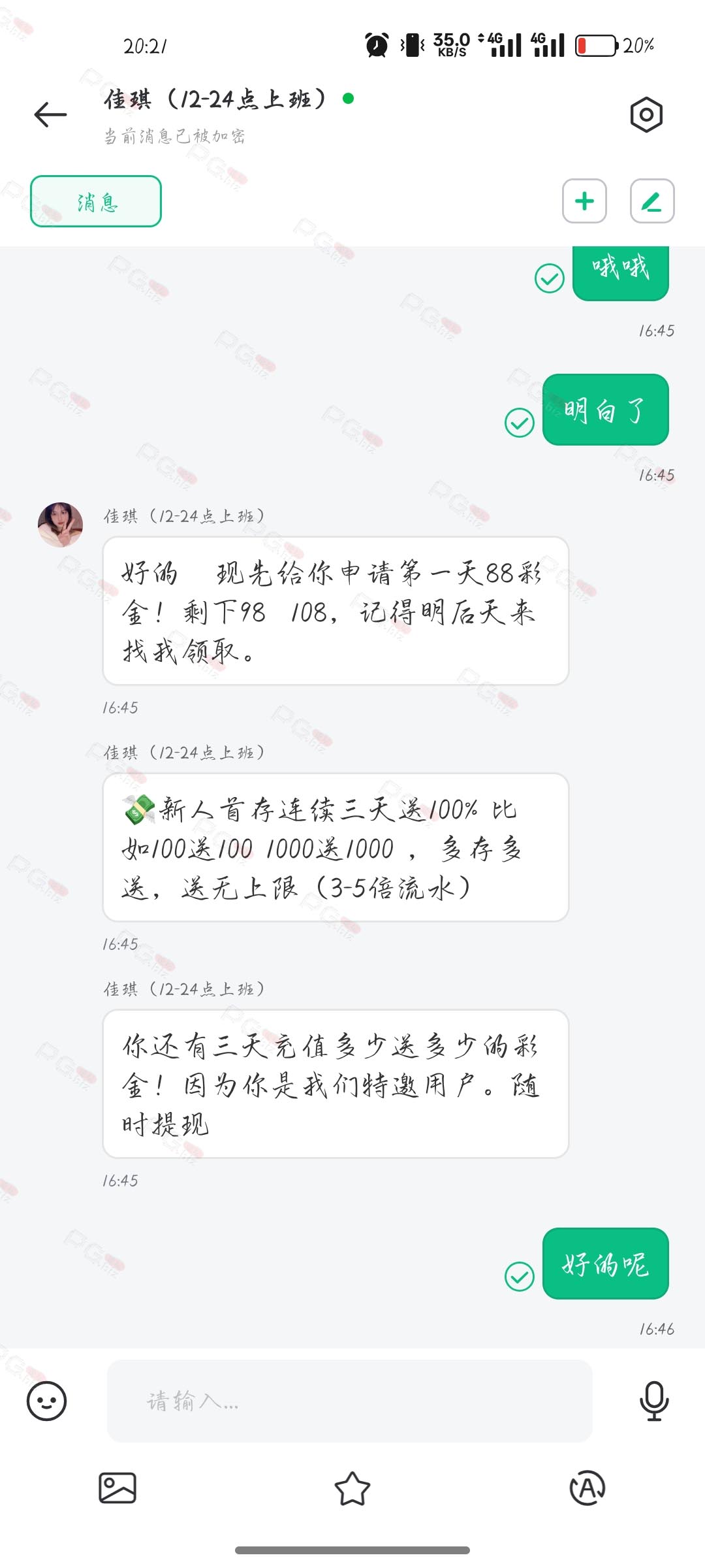 撸成功的老哥,请跟客服说您是从PG论坛 【PG.Biz】过来的。
