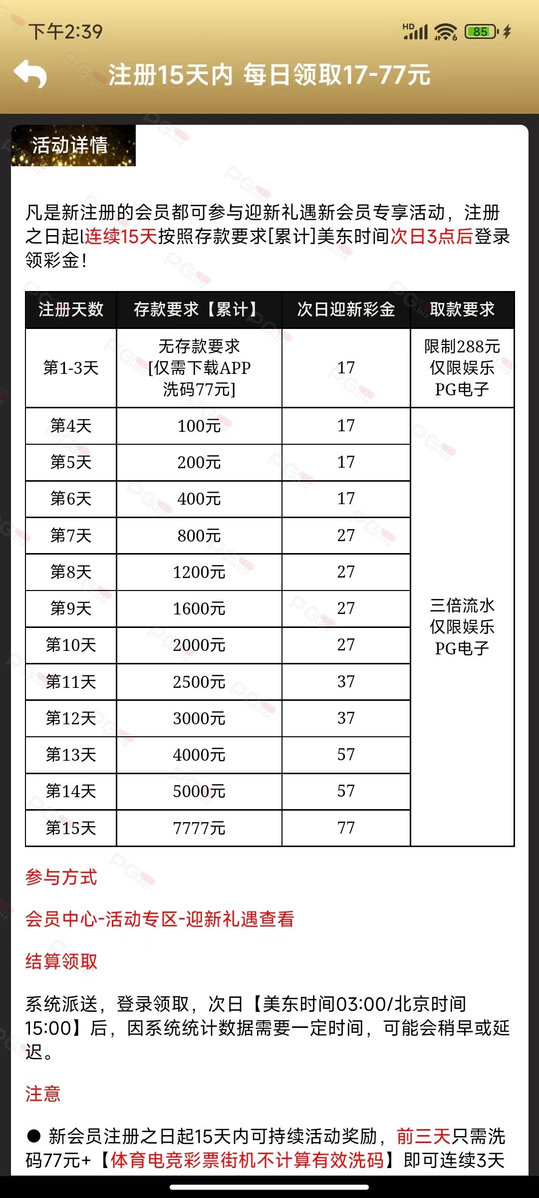 注册好十五天都能领,第四天开始要存款,规则条件自己看,提了288