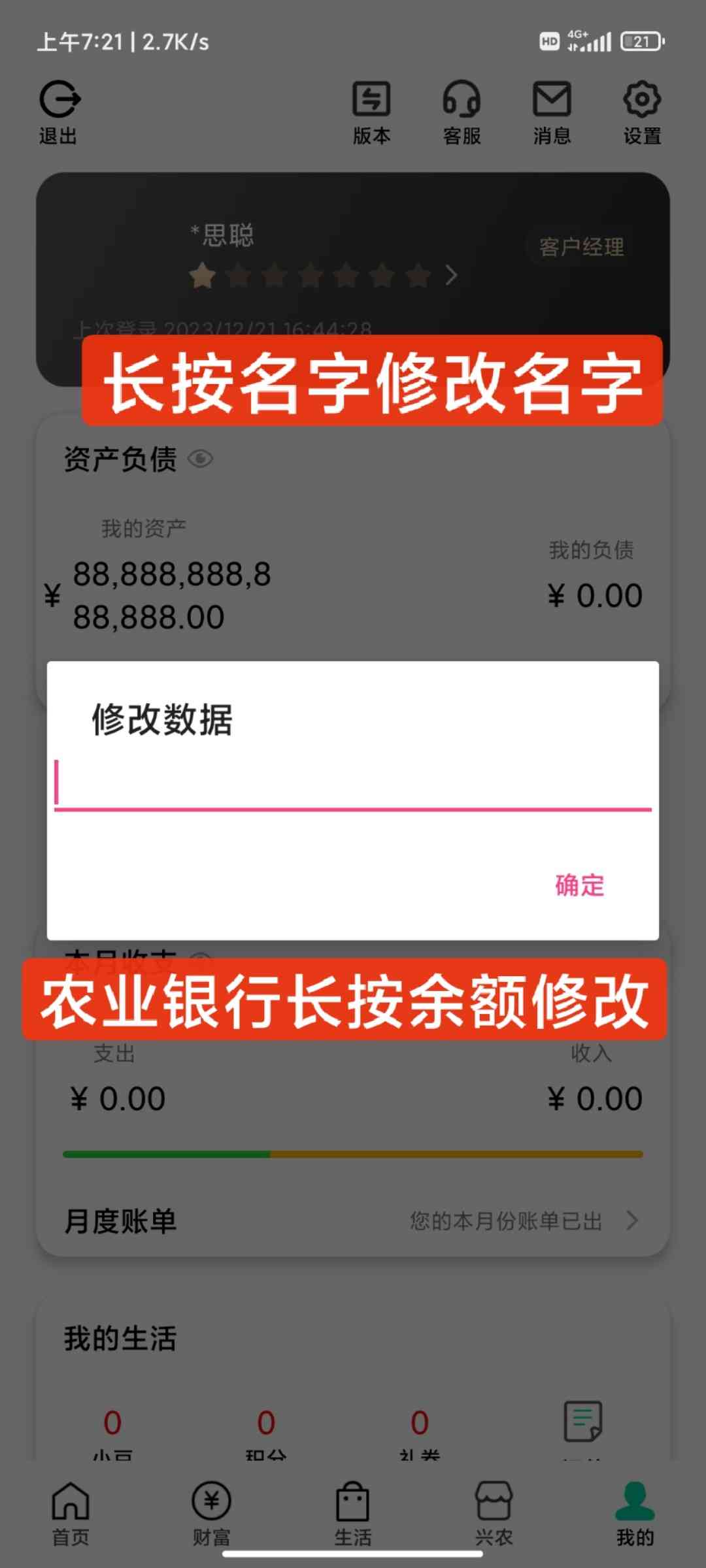 中国银行登陆密码123456dj 农业长按余额 名字修改 ,中信 兴业长按首页底部中间修改余额