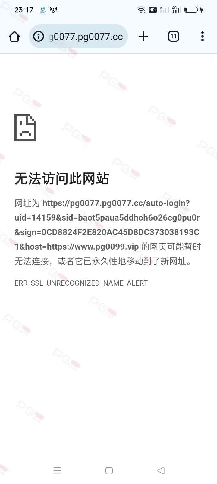 老哥,请您清除缓存之后退出,等待3-5分钟后使用手机网络数据打开论坛主网址【http://pg.biz/】点击重新检测后进入