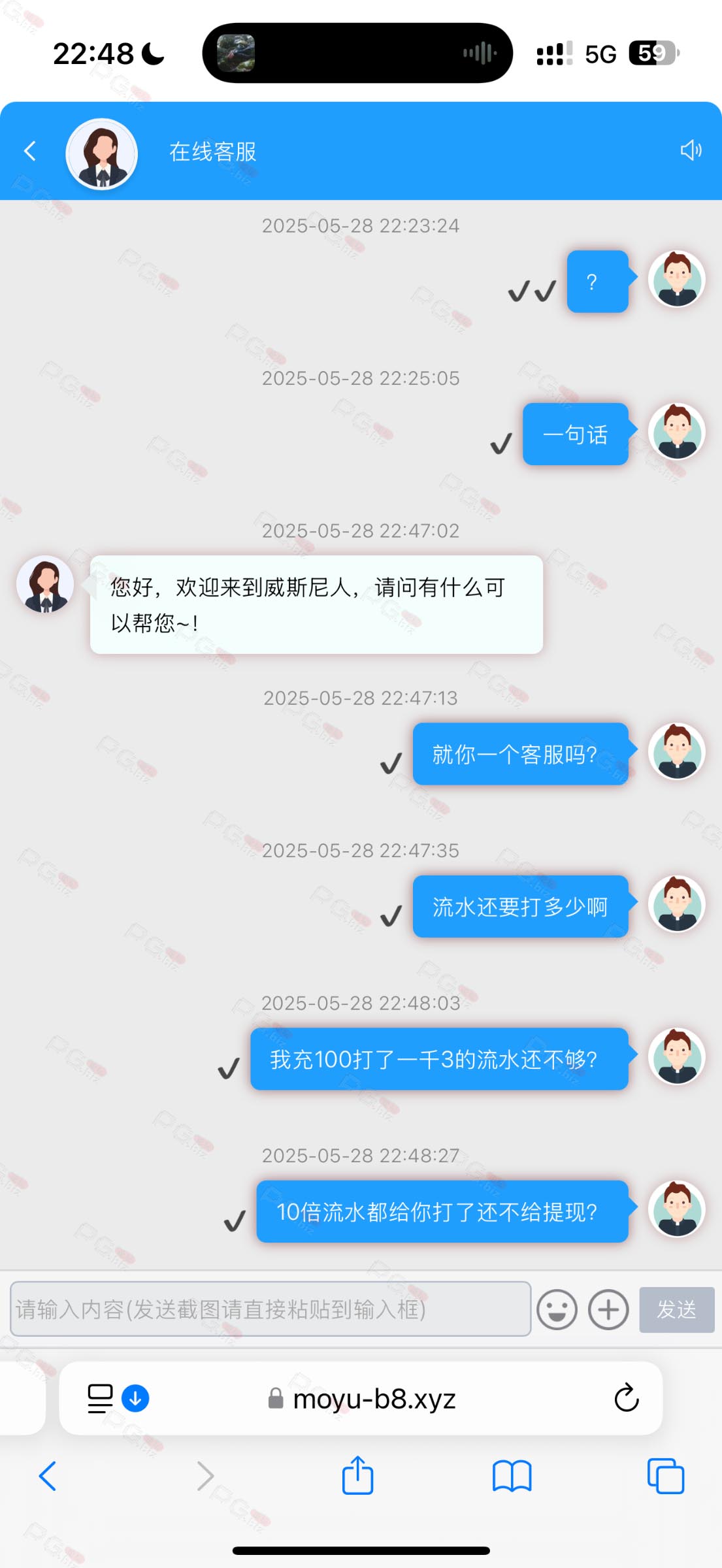 zgd1010 我也是第三次了你看我下面发的冲100打了一千3的流水提现一直都说流水不够后面我去骂了客服10几分钟就给我提现了不知道这次能不能成功