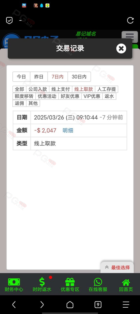 见过最垃圾的平台没有之一。第一次遇到首存都说多ip的,问题是我第一次注册这个平台。最可气的是370注几乎全是空转,妈的,最后剩下0.4给我进胡80倍的。真是恶心死我了。真的不骗人,几乎全空转,有三注盈利一丁点就不说了。