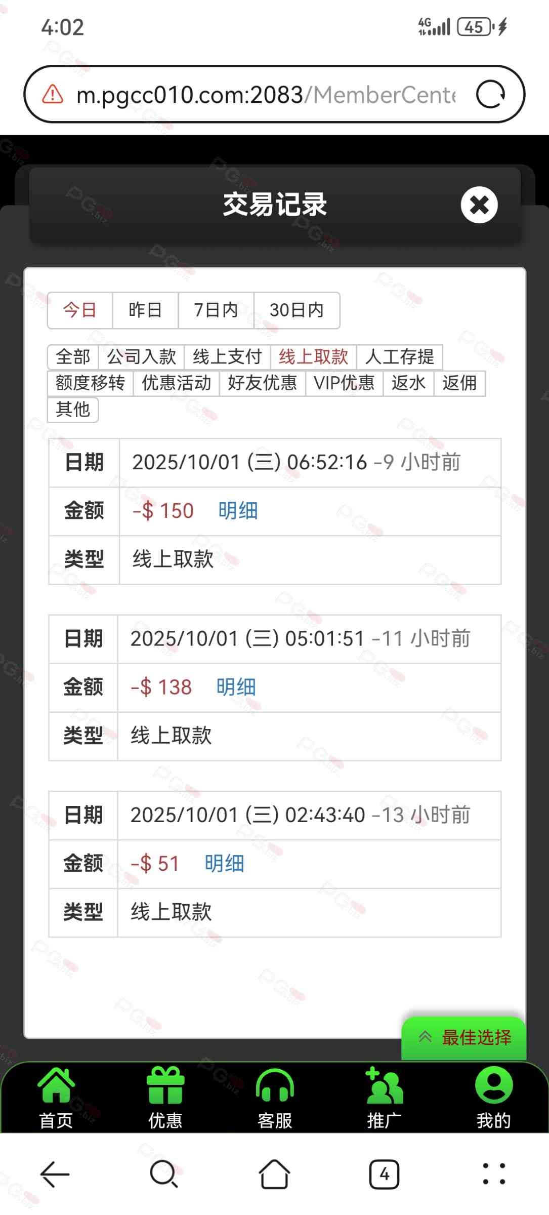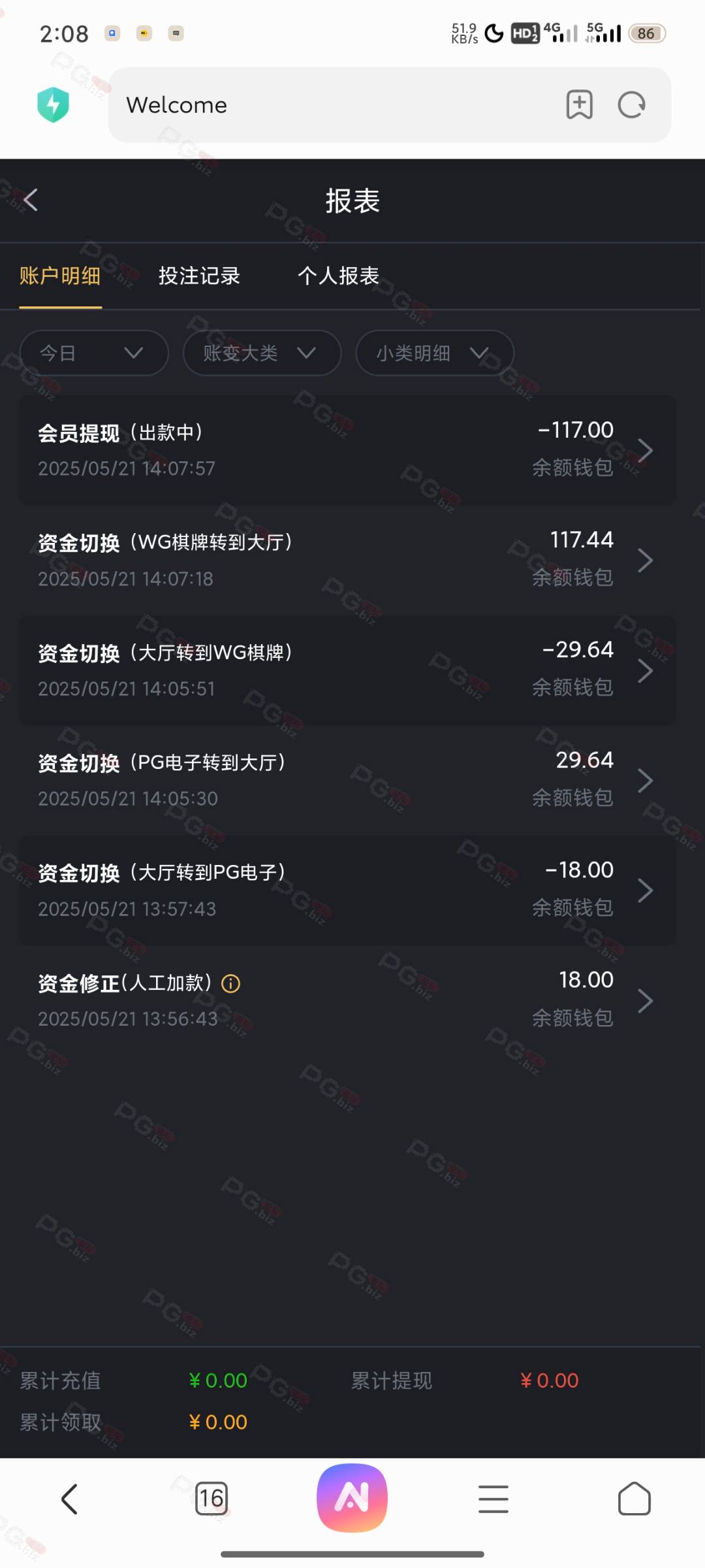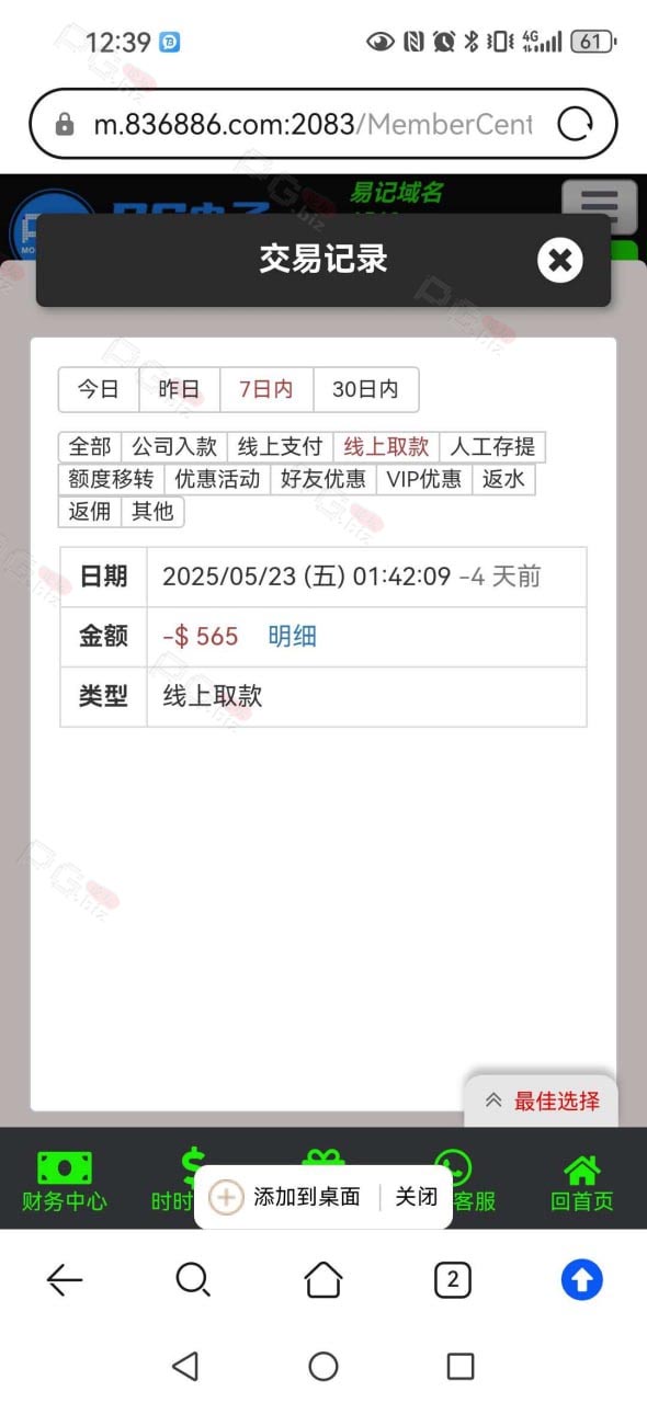 用18彩金打上去150多,不贪这就提款去。