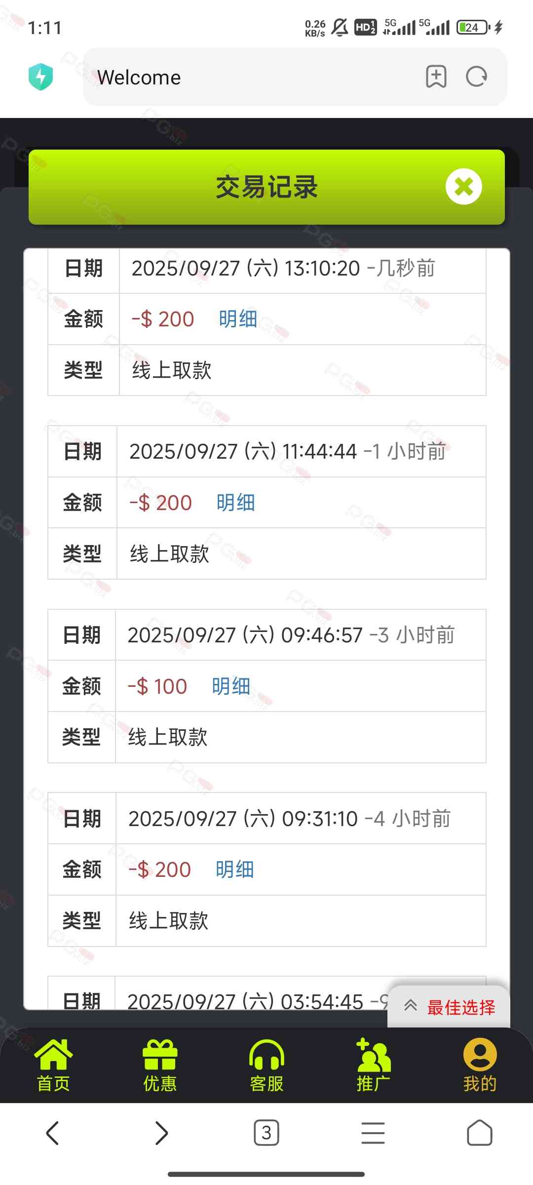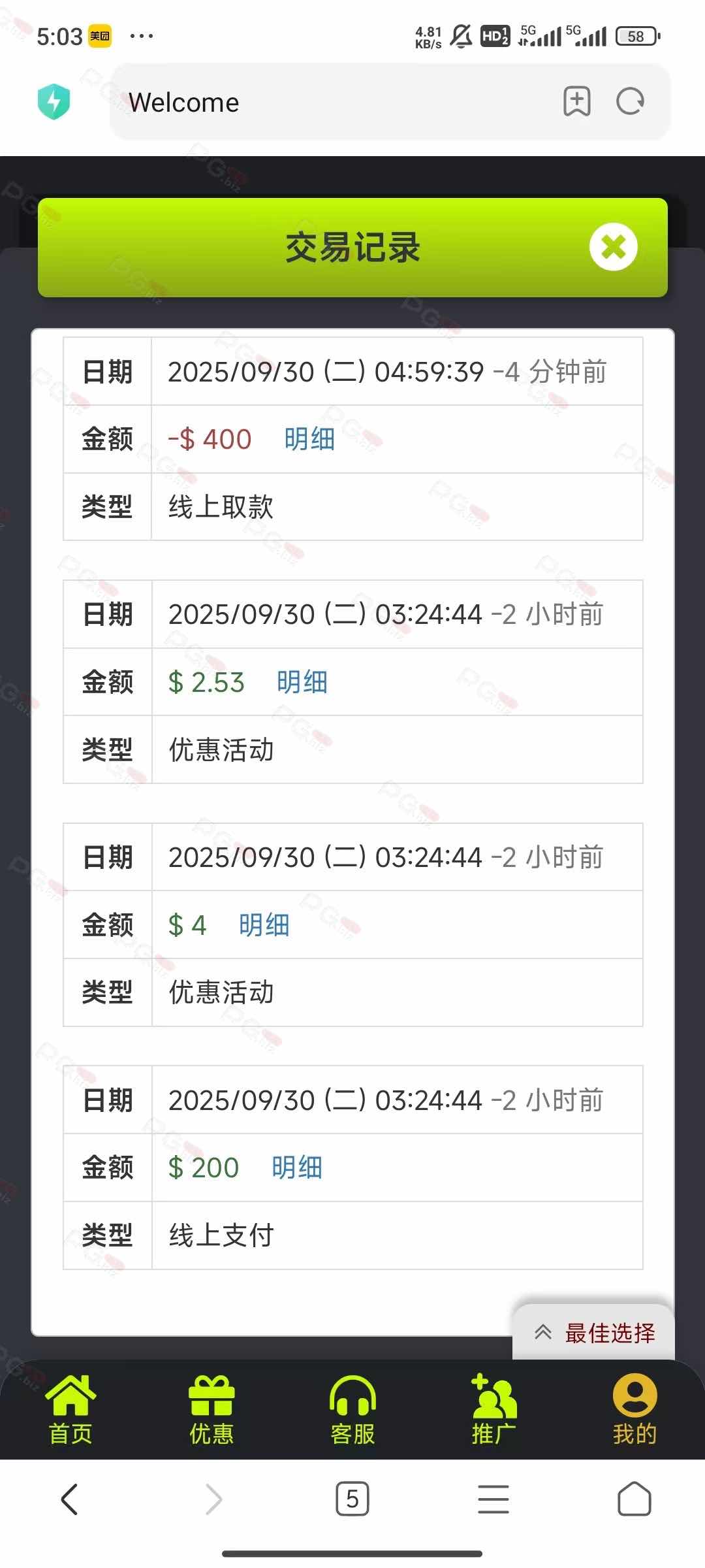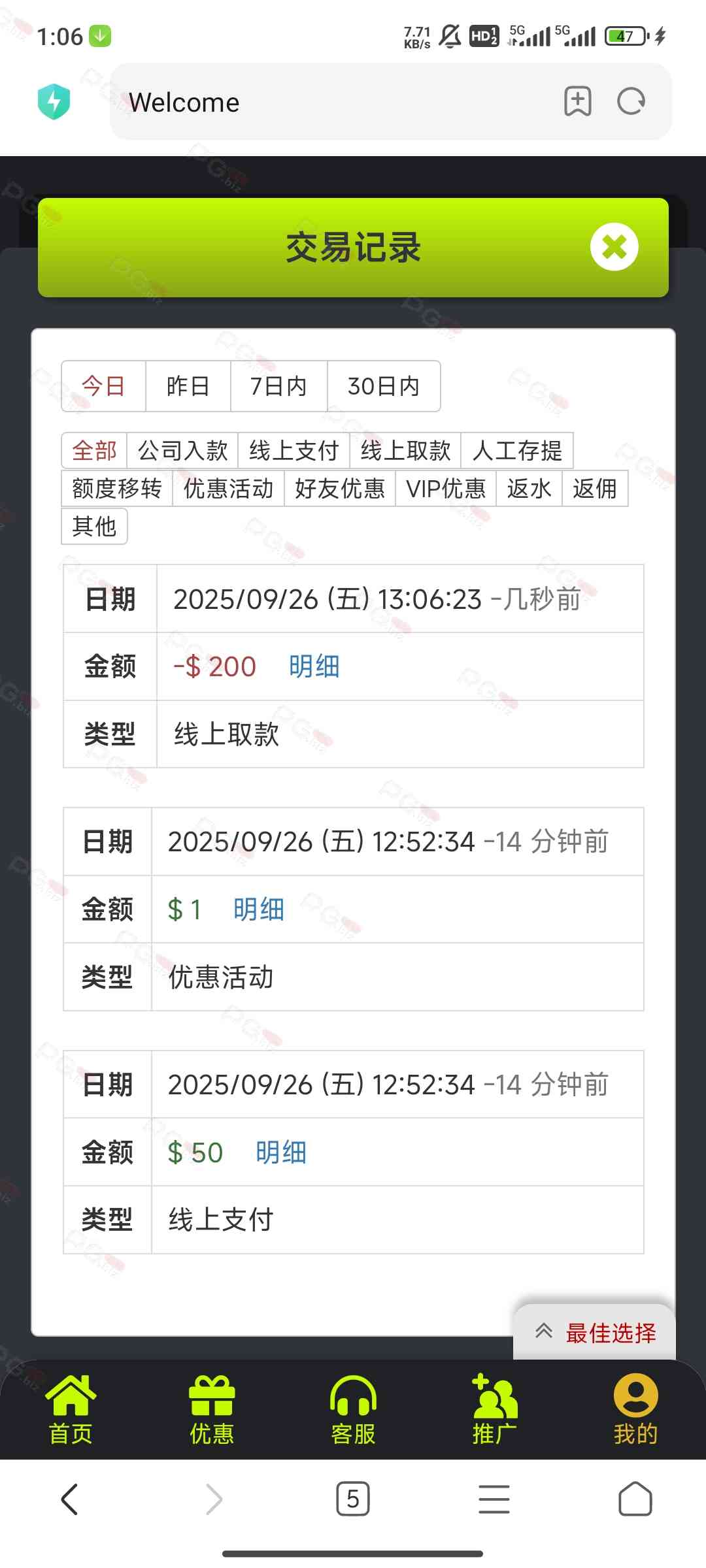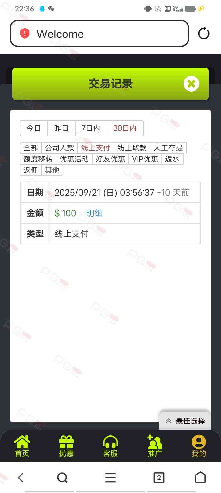 撸成功的老哥,请跟客服说您是从PG论坛 【PG.Biz】过来的。