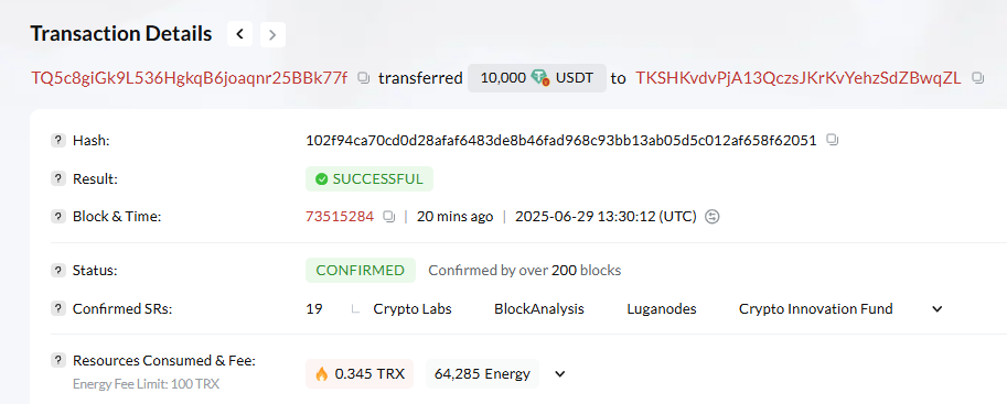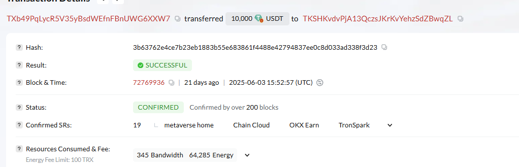 澳门永利8022上押交易哈希 : TKSHKvdvPjA13QczsJKrKvYehzSdZBwqZL