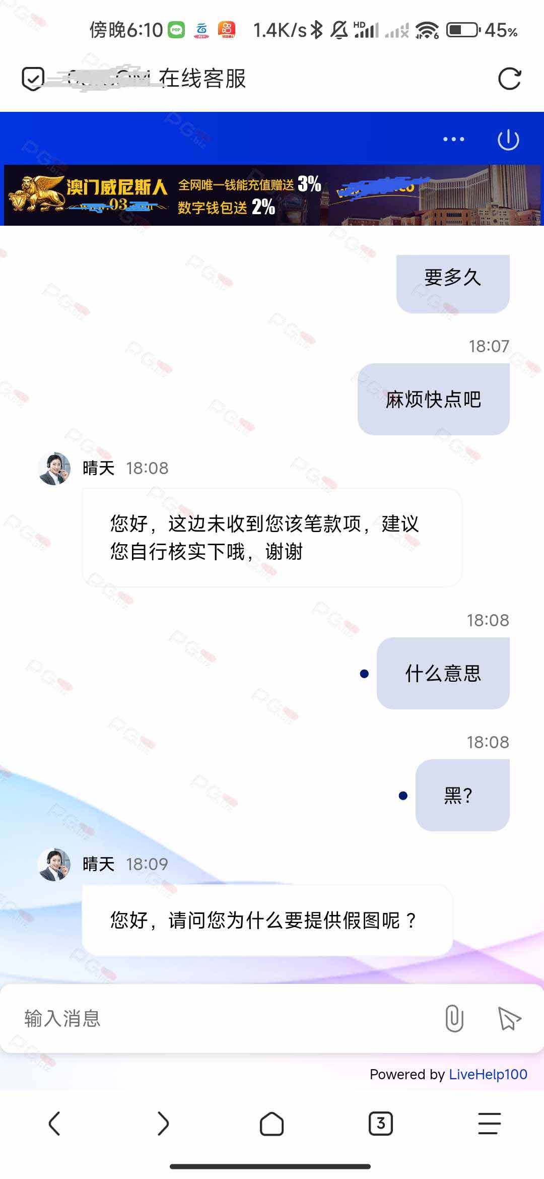 631262983 我试过充值然后又退了它给我上分了,还试过支付提款他给我打了两次,不过都是小额几百块