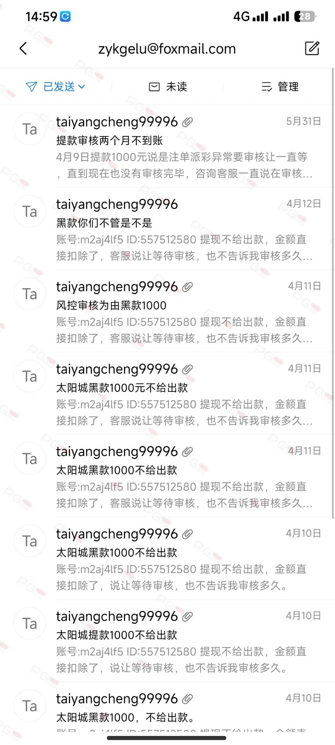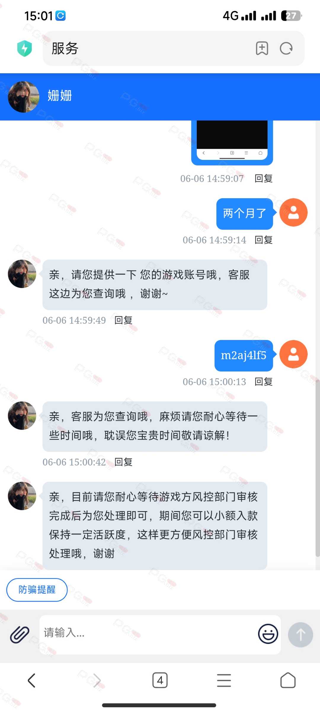 4月9号提款1000,说是派彩异常需要审核3-30天,这特么都快两个月了,每次客服回复都是让等提高活跃度,我基本上每天都玩,这段时间不玩了,之后充值提款就给出,出的多了就不给出了 发官方邮箱反馈 站内信都不行了