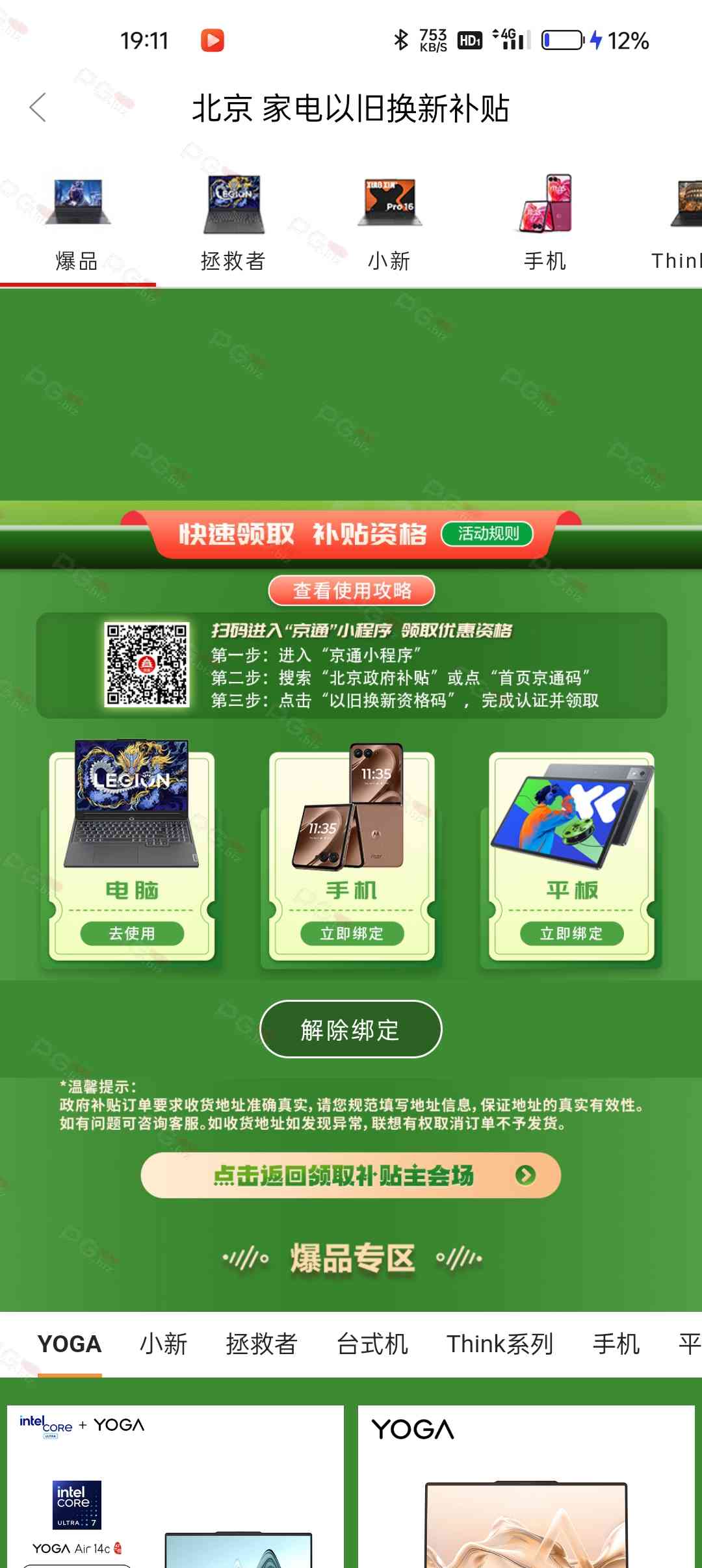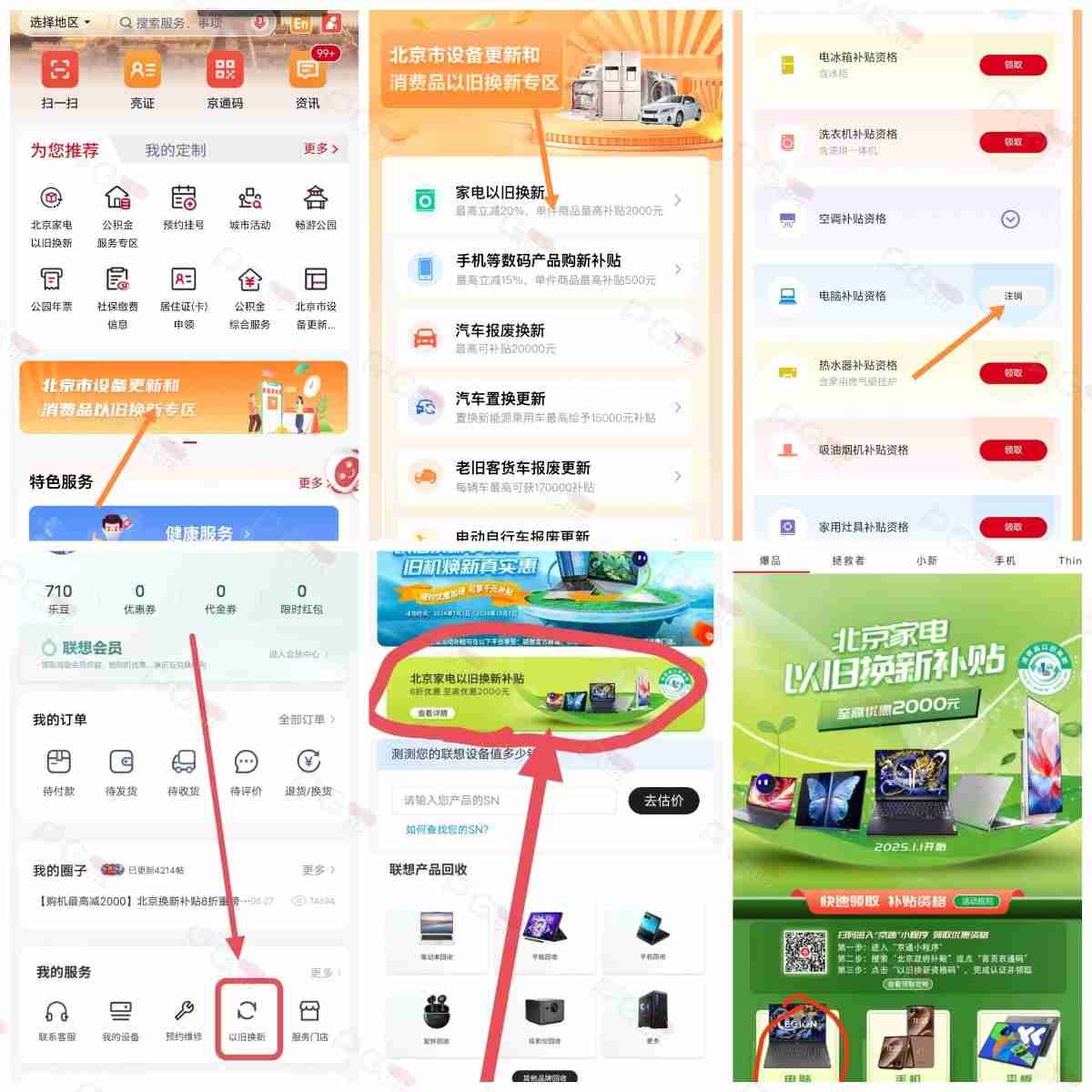 人人能领80~200第一步用微信打开京通进去登录了 第二步用幻影分身把自己的微信地址改到北京(北京任意地方)然后再用分身微信进入京通里面有个北京以旧换新活动 点击领取家电里面的电脑卷复制卷码 第三步下载联想然后去绑定自己的卷 去闲鱼然后挂京通联想卷一般都是80以上 低于80别卖市场价现在150左右一张