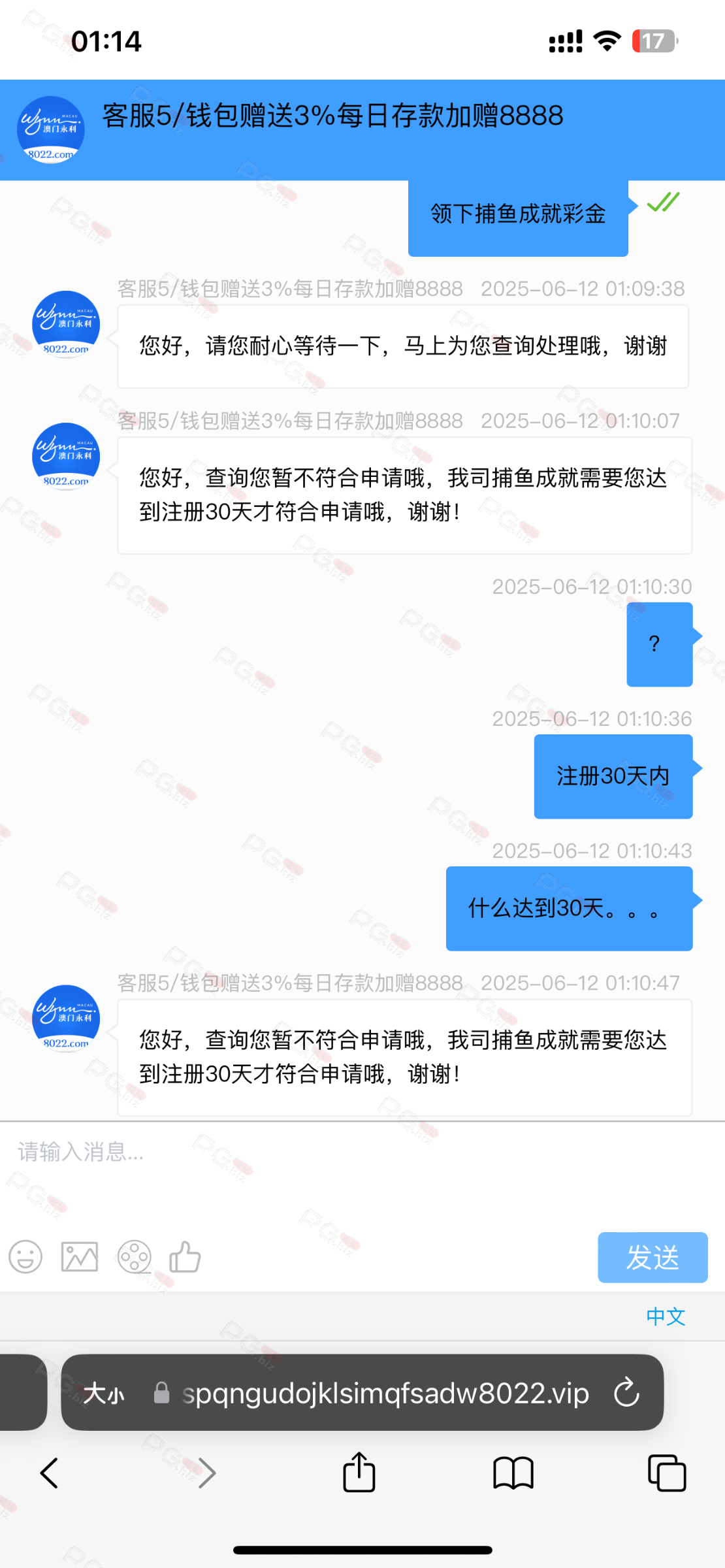 撸成功的老哥,请跟客服说您是从PG论坛 【PG.Biz】过来的。