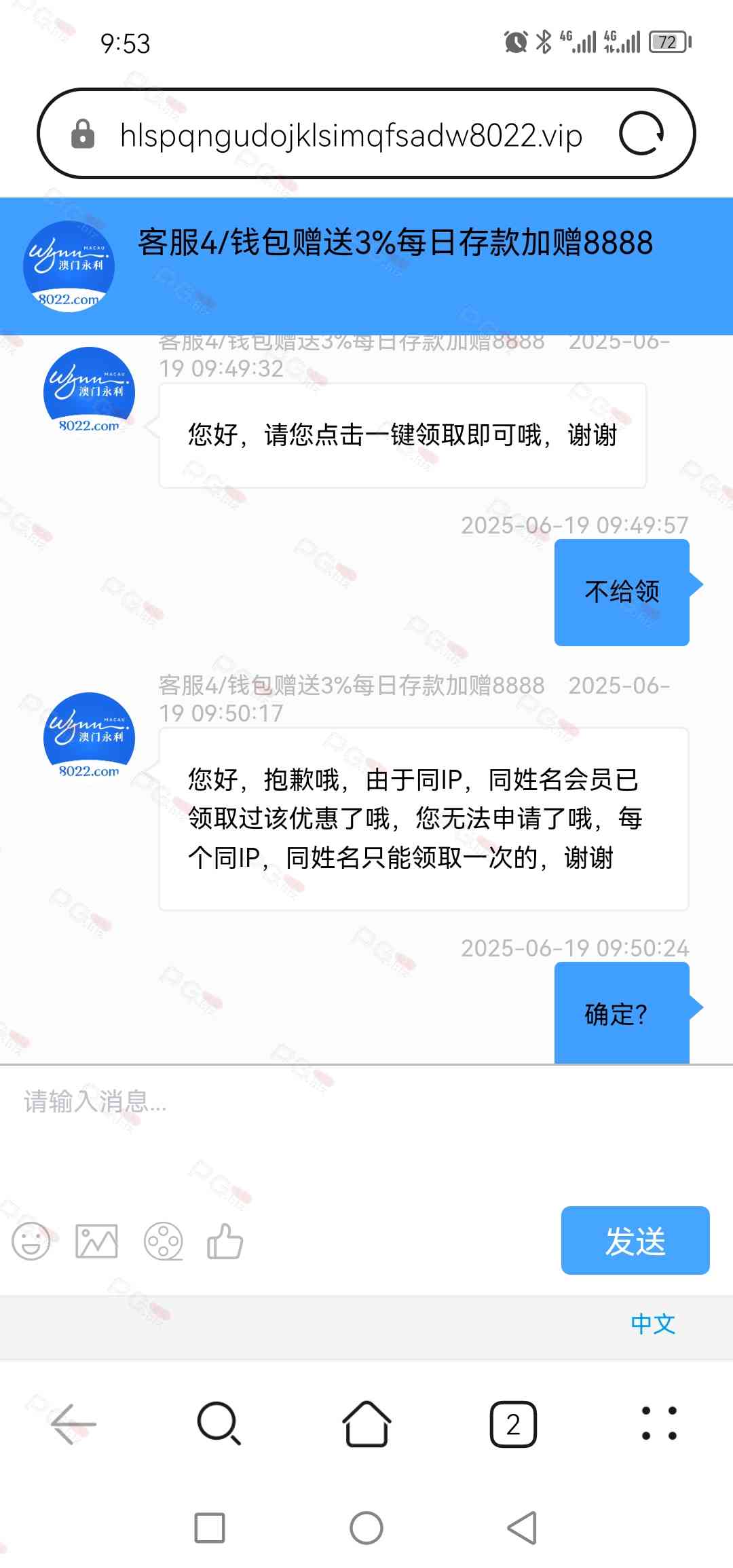 昨天我申请50+50上来就说我多ip,我说我论坛过来的别胡说,立马换了口风说给我破例,申请是申请到了一点水没有,pg进去一拉就没,还不如论坛的pg