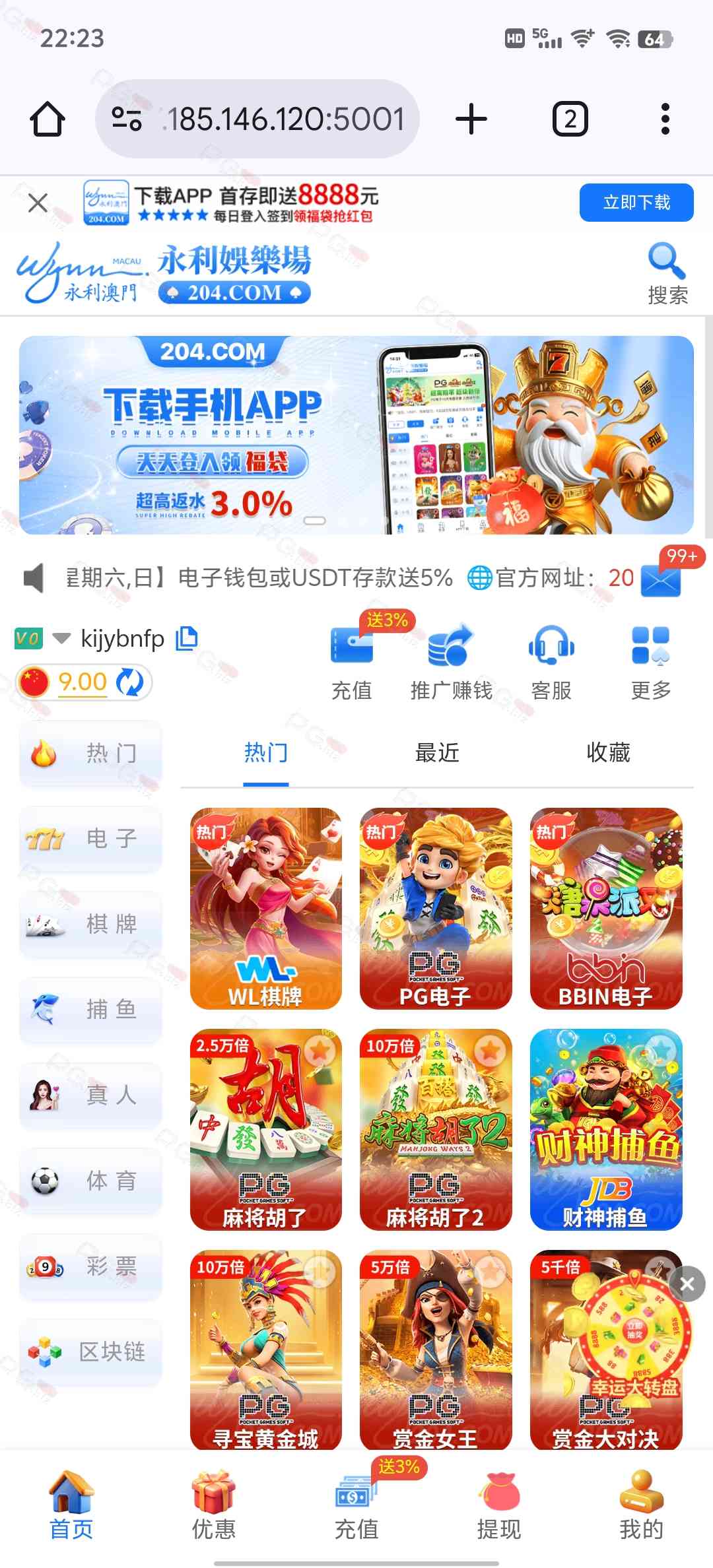 我9块打了1500但是没有出款