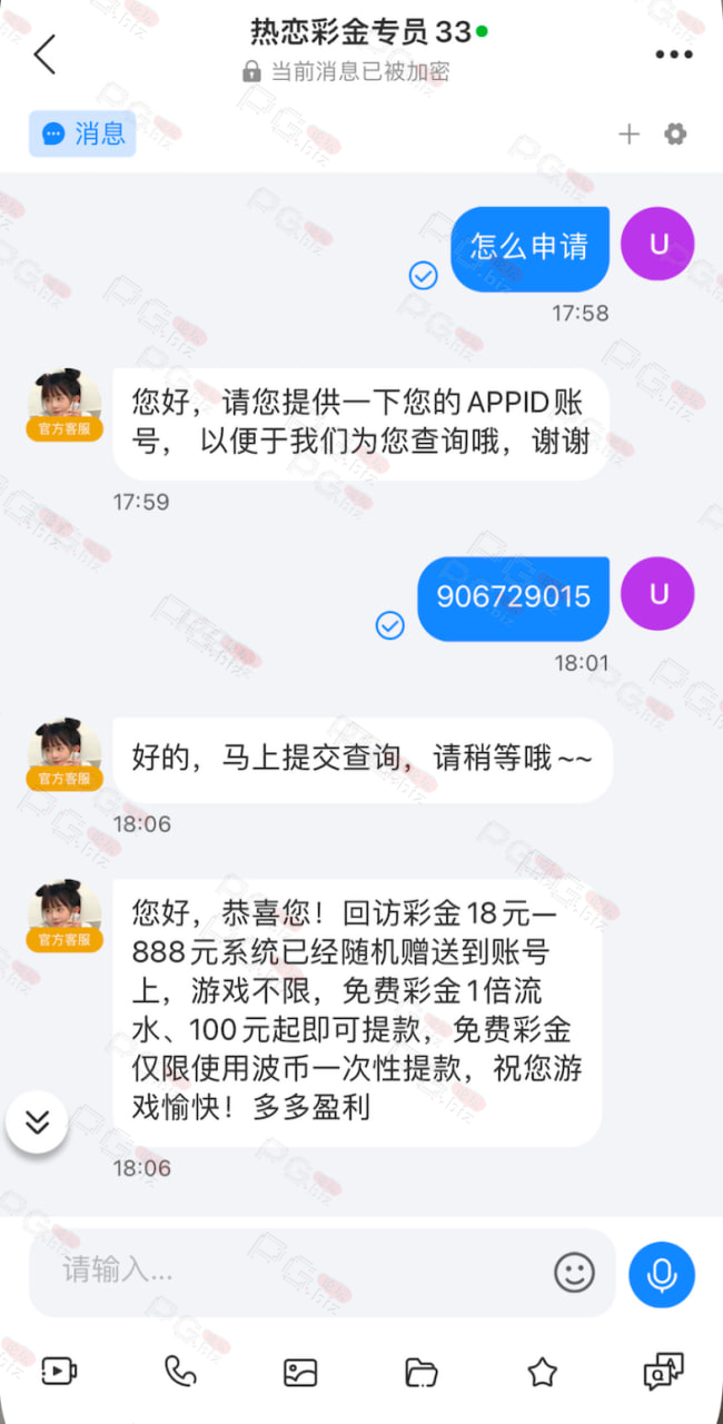 撸成功的老哥,请跟客服说您是从PG论坛 【PG.Biz】过来的。