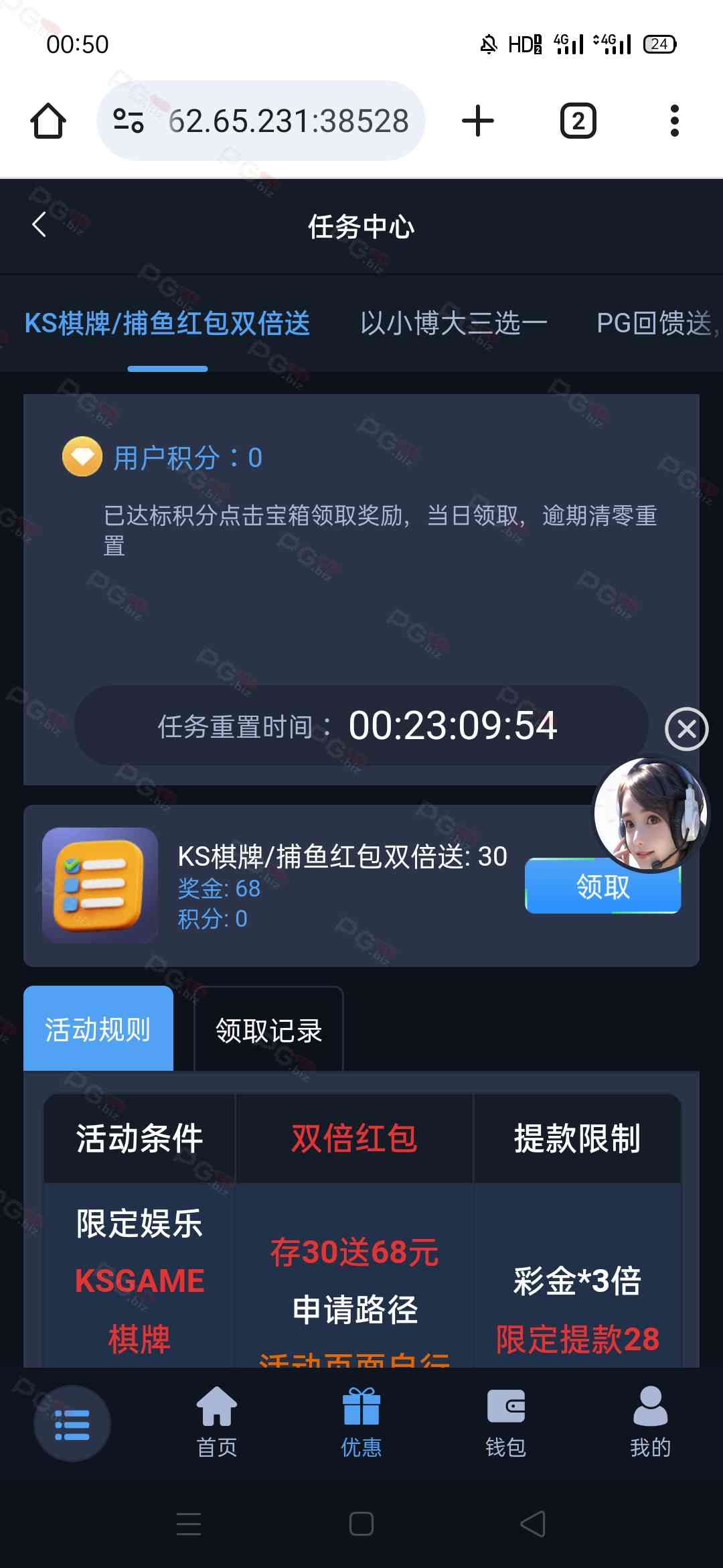 撸成功的老哥,请跟客服说您是从PG论坛 【PG.Biz】过来的。