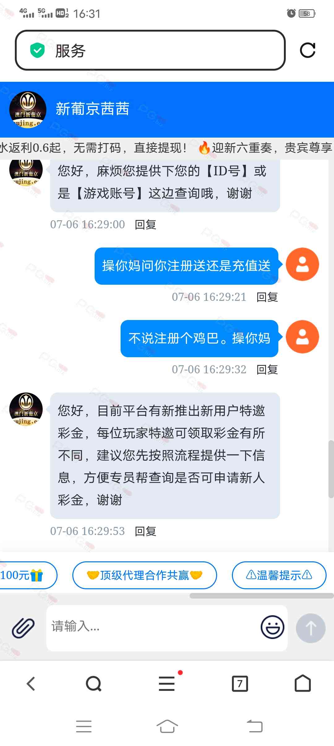 撸成功的老哥,请跟客服说您是从PG论坛 【PG.Biz】过来的。