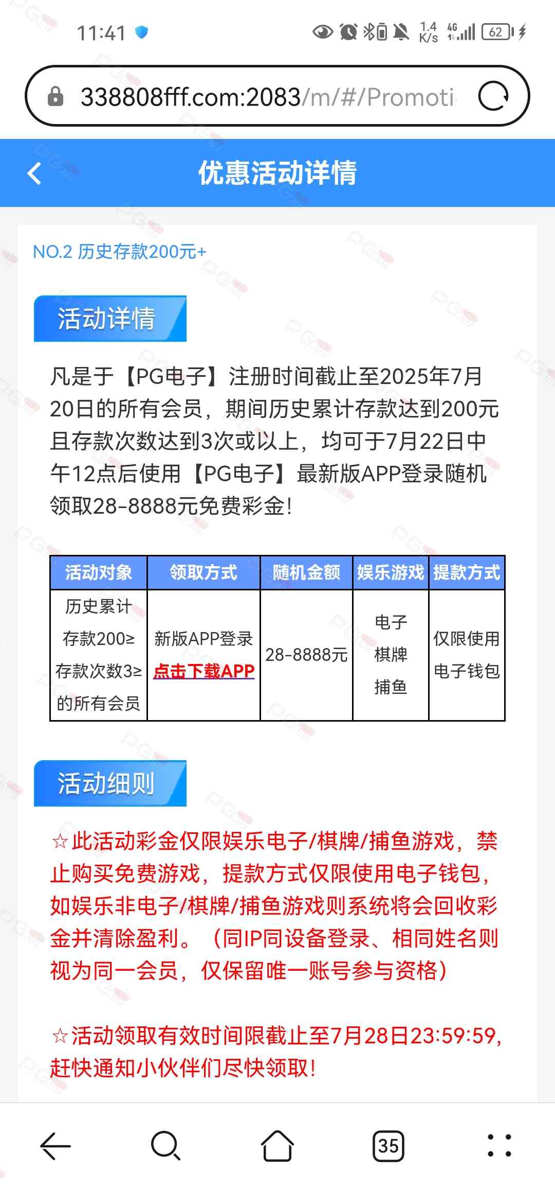 撸成功的老哥,请跟客服说您是从PG论坛 【PG.Biz】过来的。