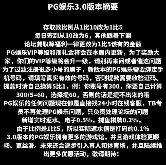 请您先进入PG娱乐新版本,生成账号以后,上周的周礼金,会在本周内进行人工处理到您的新版本账号余额,给您造成的不便请您海涵