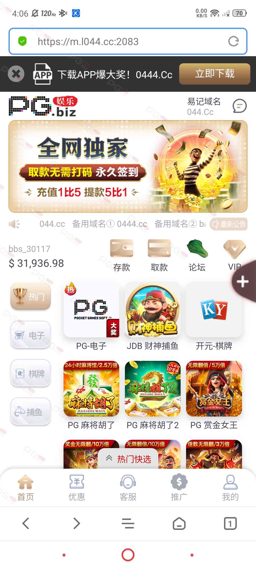 撸成功的老哥,请跟客服说您是从PG论坛 【PG.Biz】过来的。