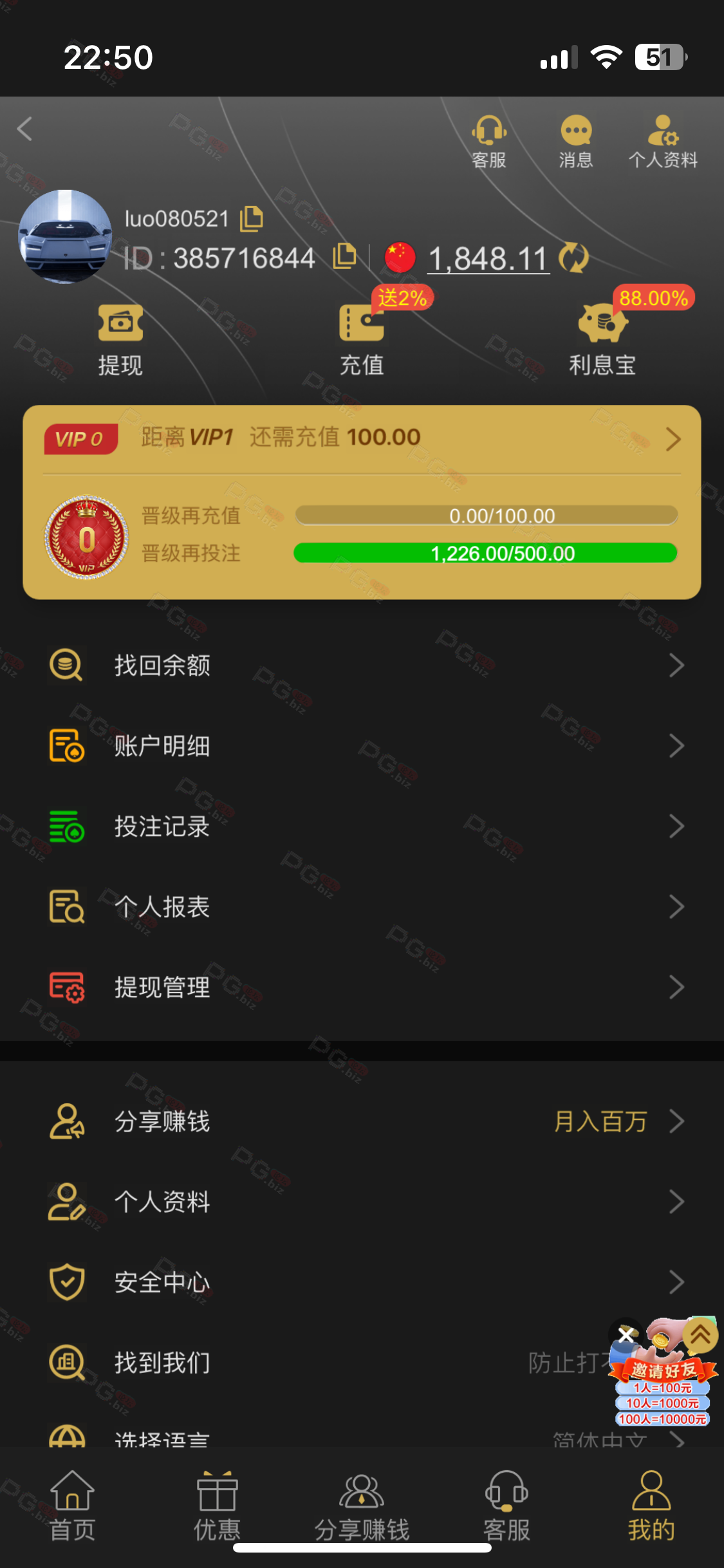 撸成功的老哥,请跟客服说您是从PG论坛 【PG.Biz】过来的。