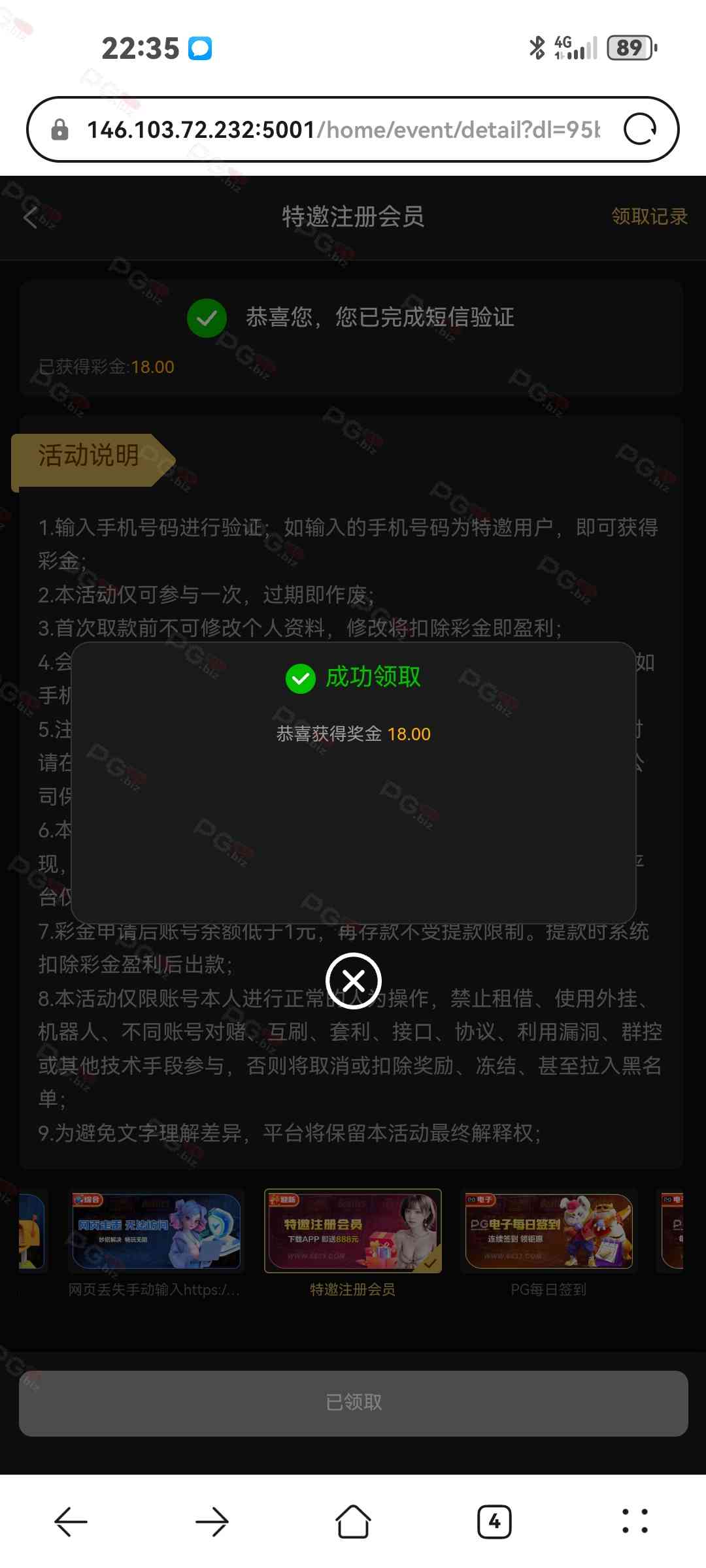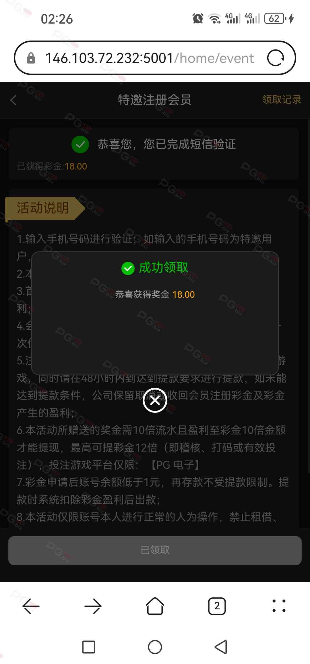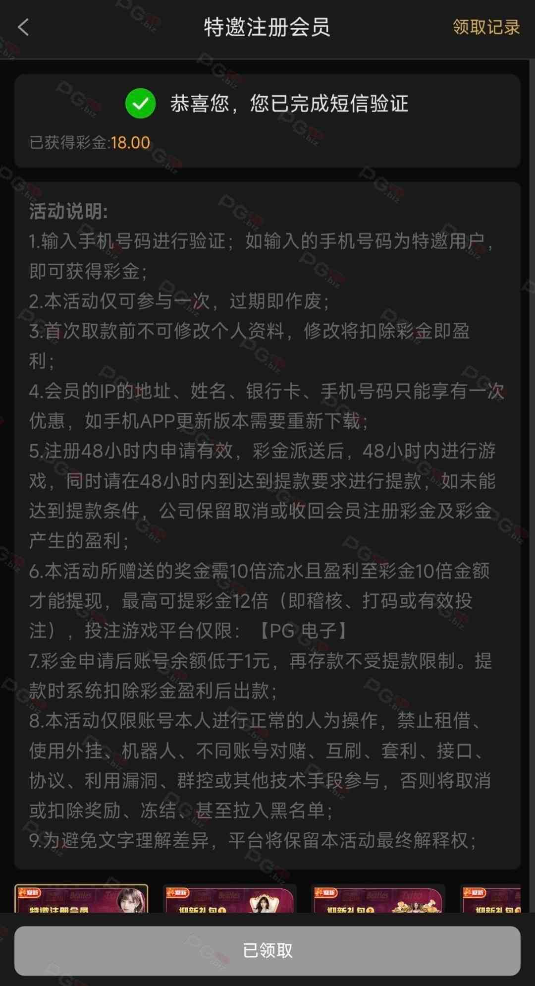 撸成功的老哥,请跟客服说您是从PG论坛 【PG.Biz】过来的。