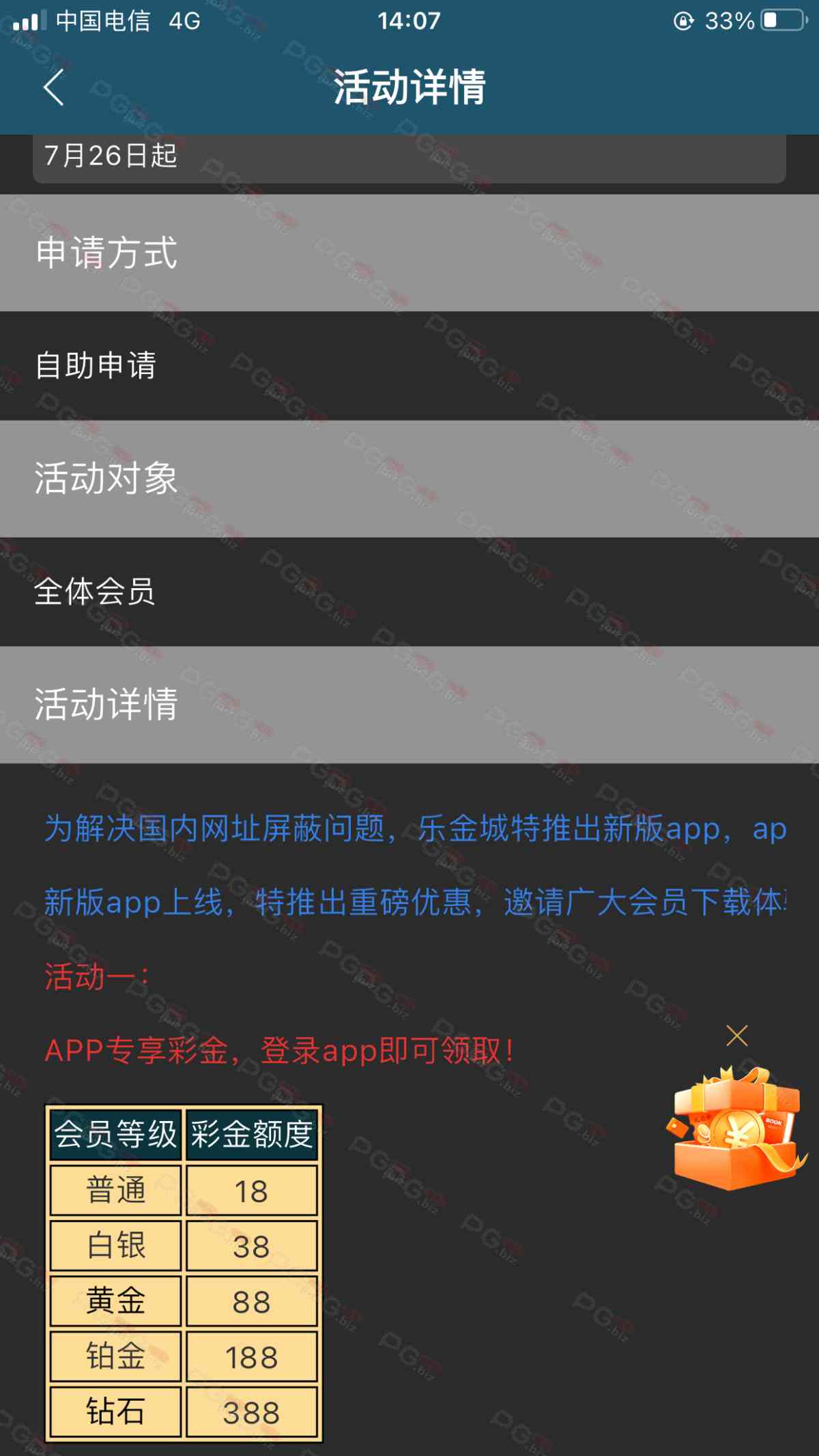 撸成功的老哥,请跟客服说您是从PG论坛 【PG.Biz】过来的。