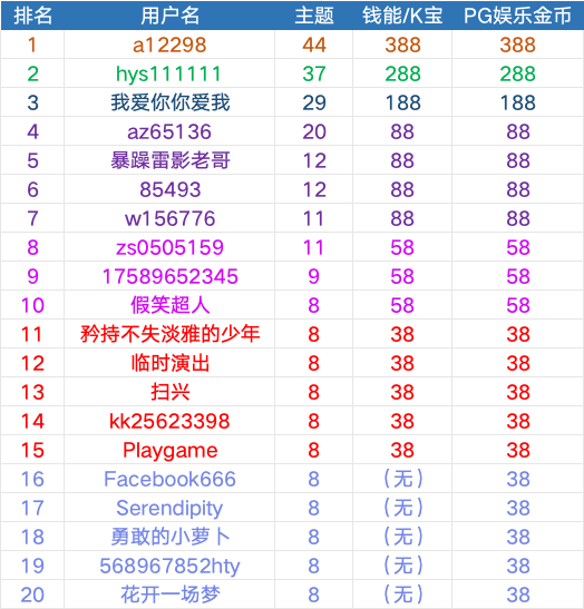 第11名 - 第15名 :38 人民币 【钱能/K宝】+ 38 PG娱乐金币