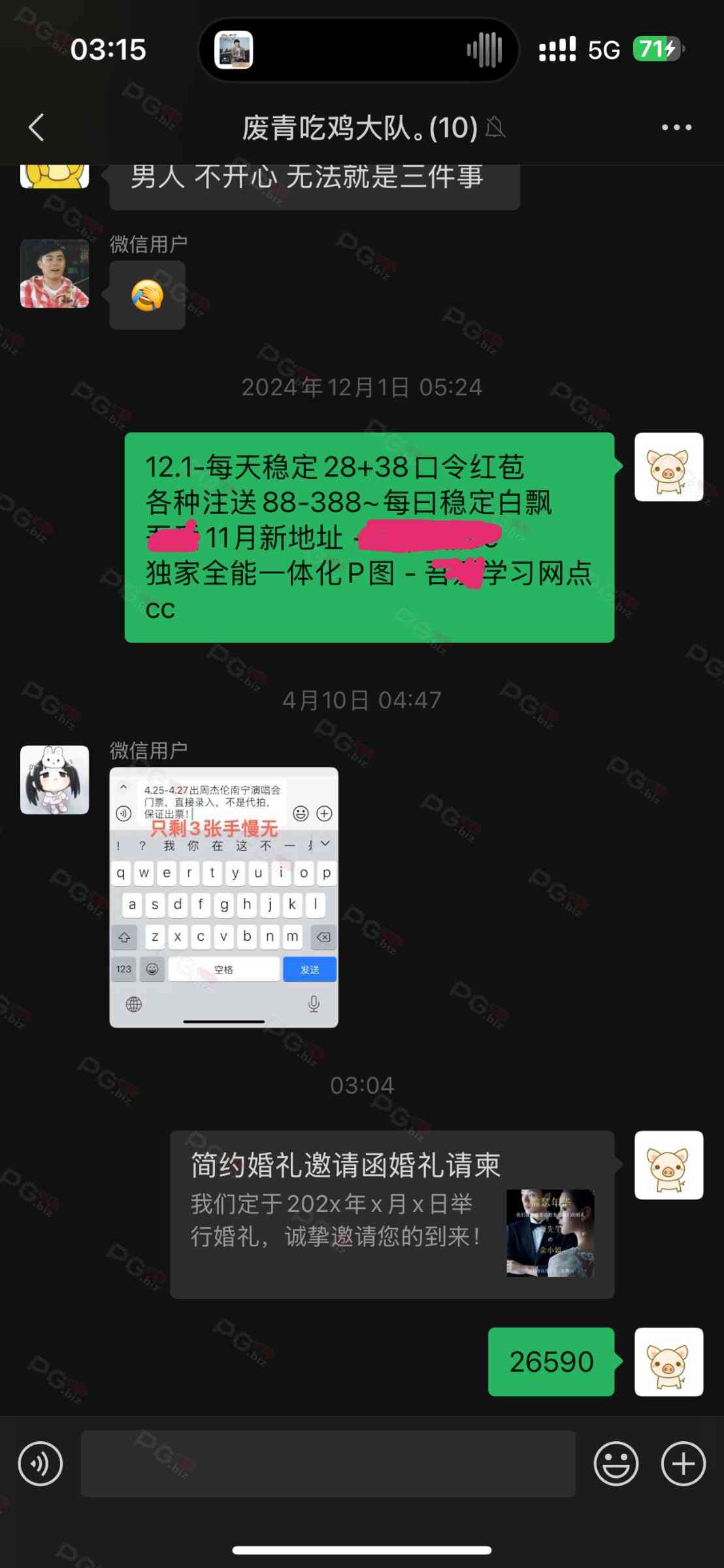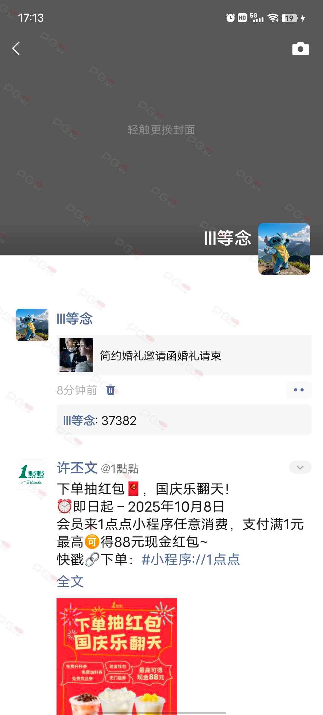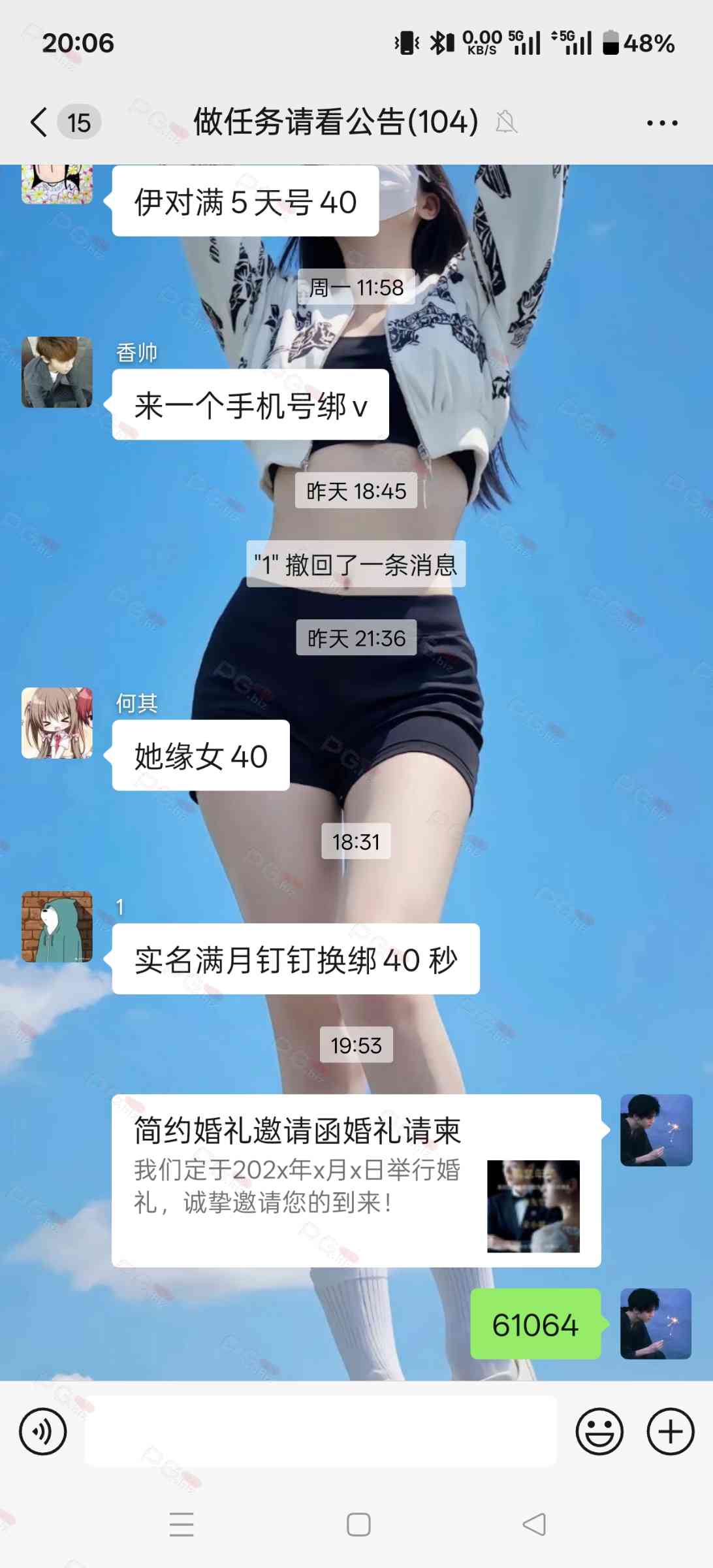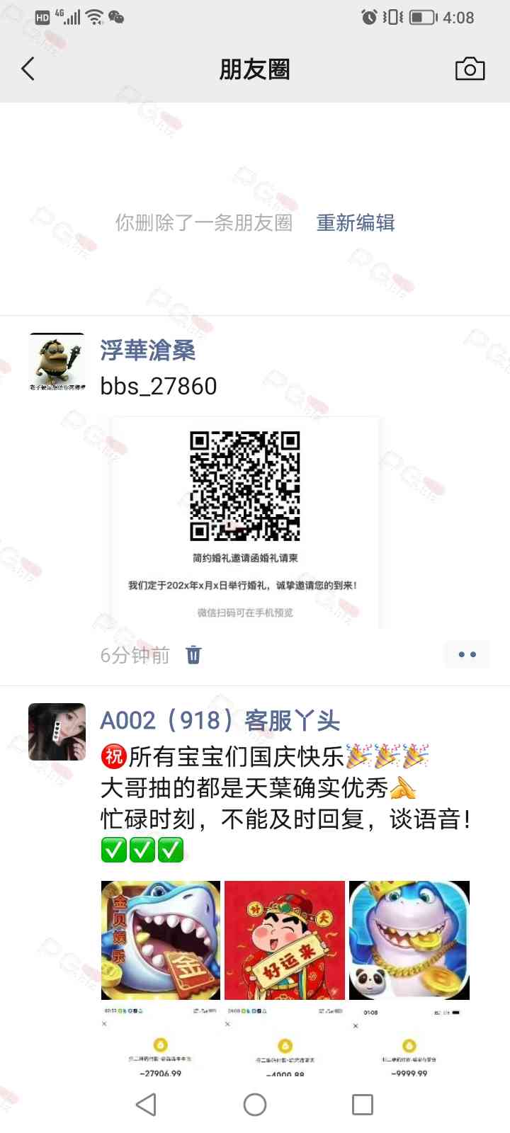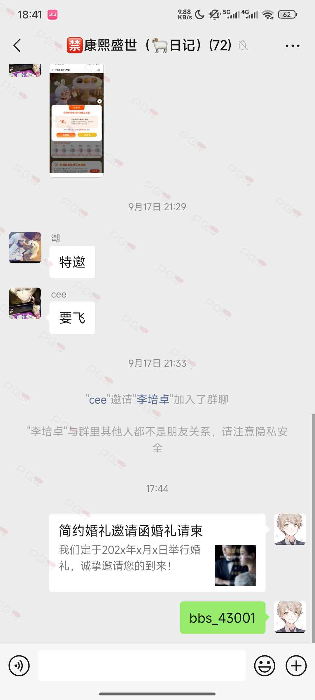 由于是国庆现金回馈的关系,幸运星要求的这些步骤其实不是很严格,不要求你们出示视频等证明,只是希望大家能开开心心的一起领个回礼,所以希望各位兄弟们也别造假,这些只是普通的婚礼邀请函,别搞假的或者搞了隐藏或撤回什么的,介绍多点新会员来,刚好能参与这场世纪婚礼,一起得到PG论坛的现金回馈18元回礼