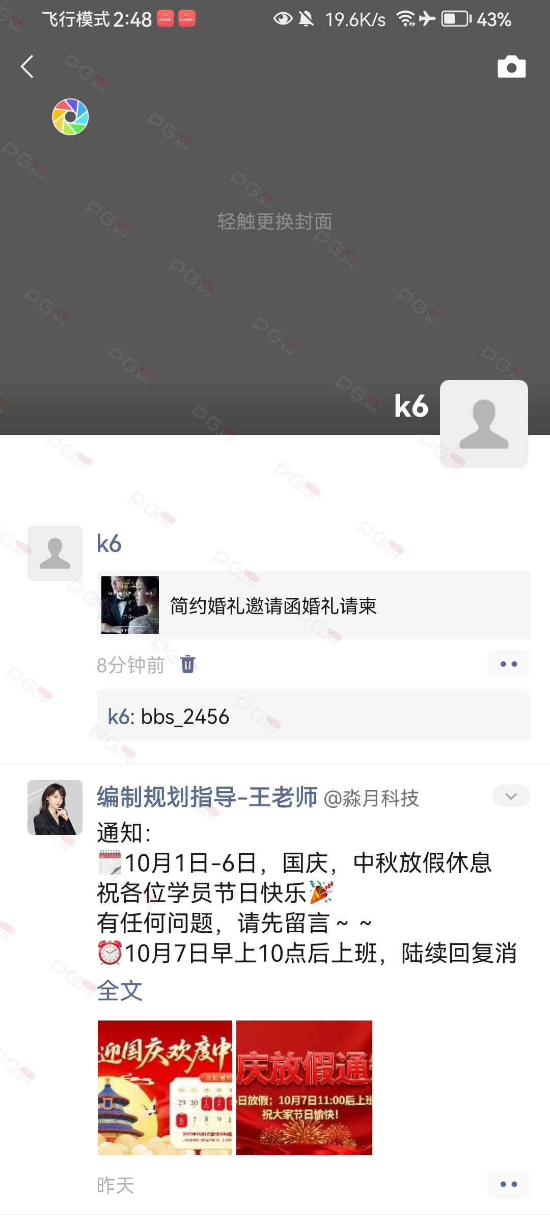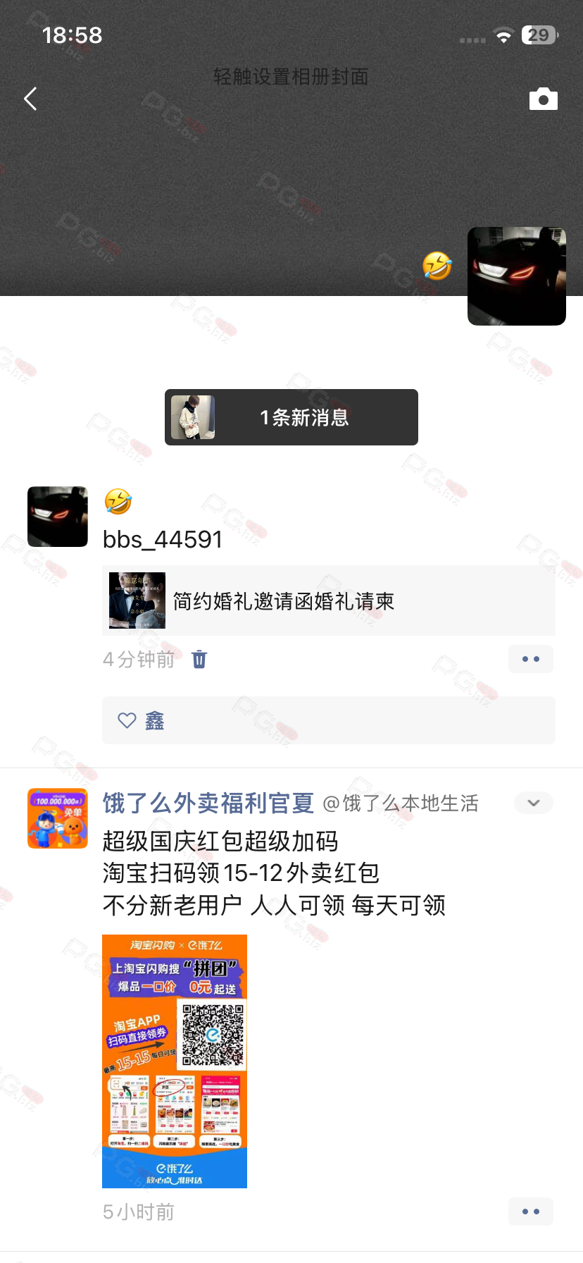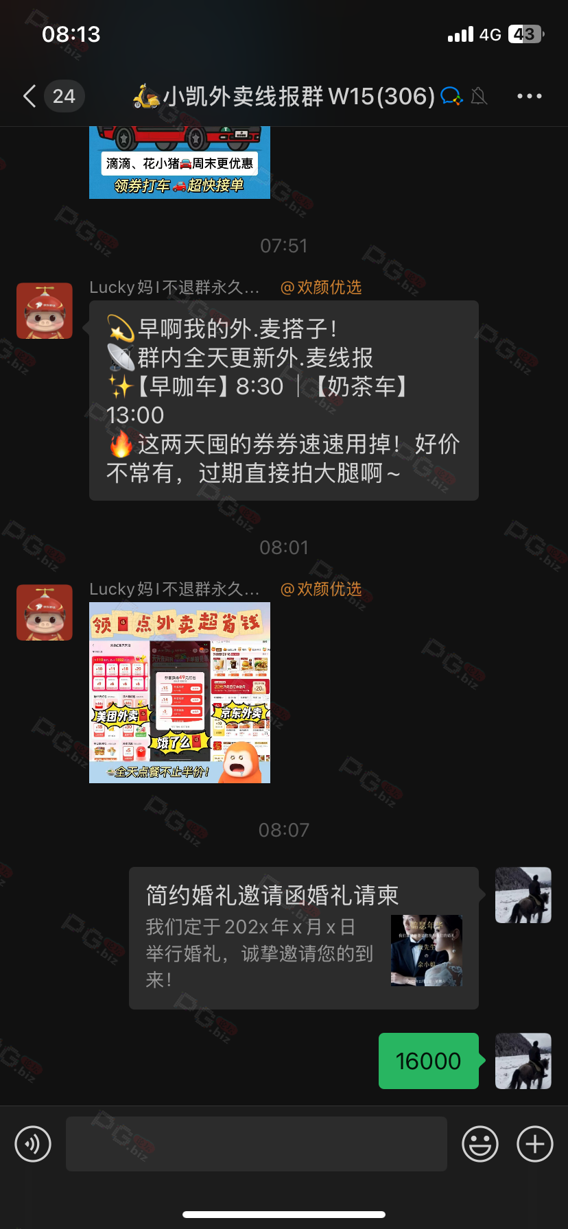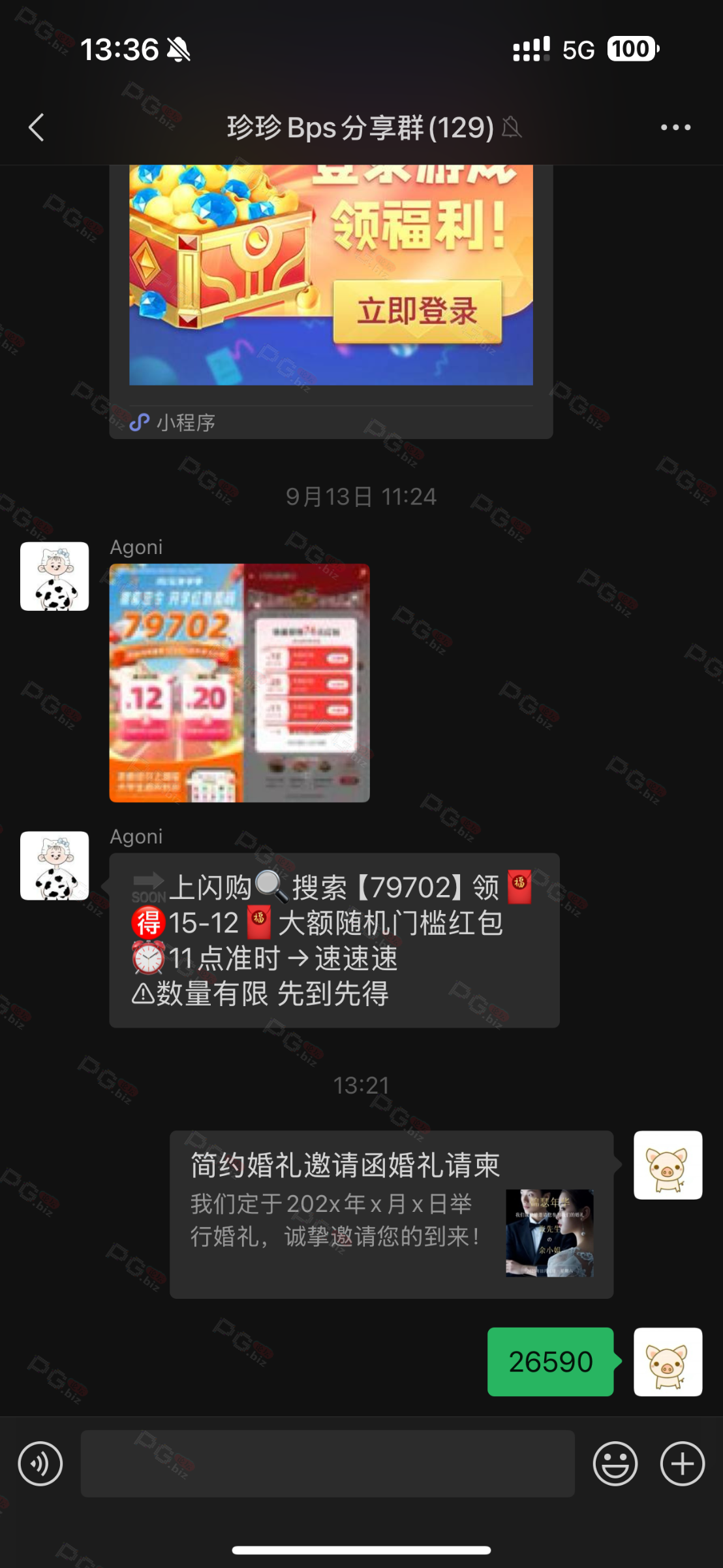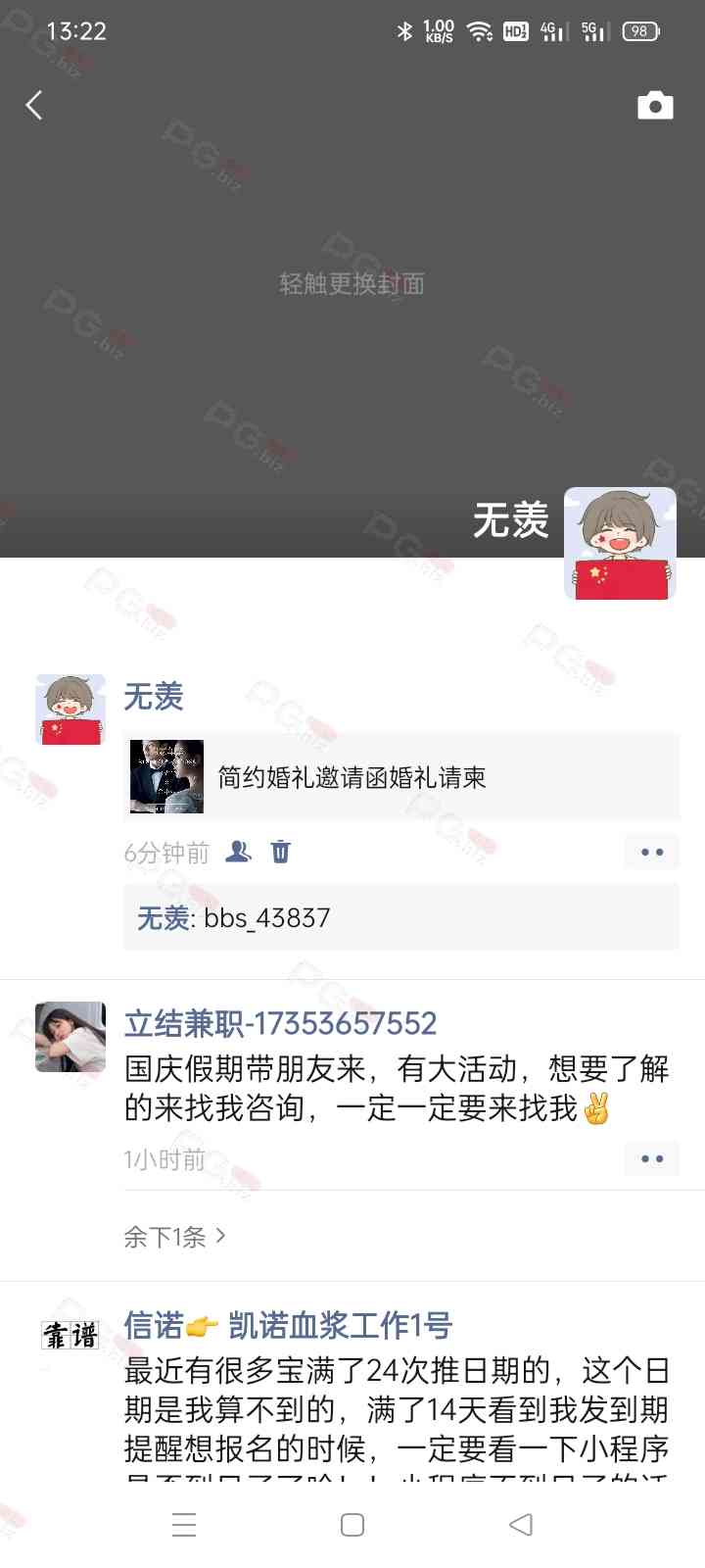 由于是国庆现金回馈的关系,幸运星要求的这些步骤其实不是很严格,不要求你们出示视频等证明,只是希望大家能开开心心的一起领个回礼,所以希望各位兄弟们也别造假,这些只是普通的婚礼邀请函,别搞假的或者搞了隐藏或撤回什么的,介绍多点新会员来,刚好能参与这场世纪婚礼,一起得到PG论坛的现金回馈18元回礼