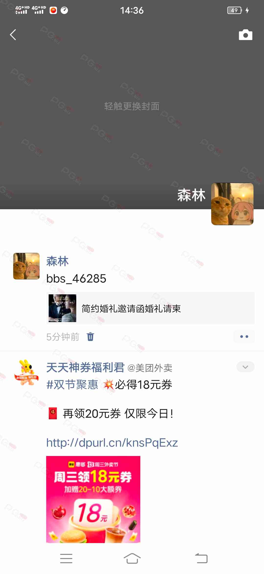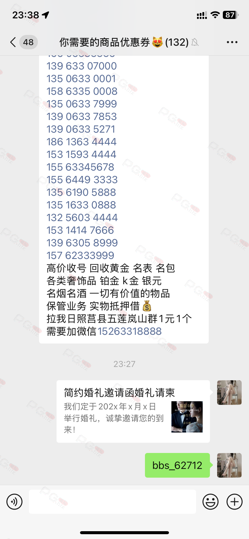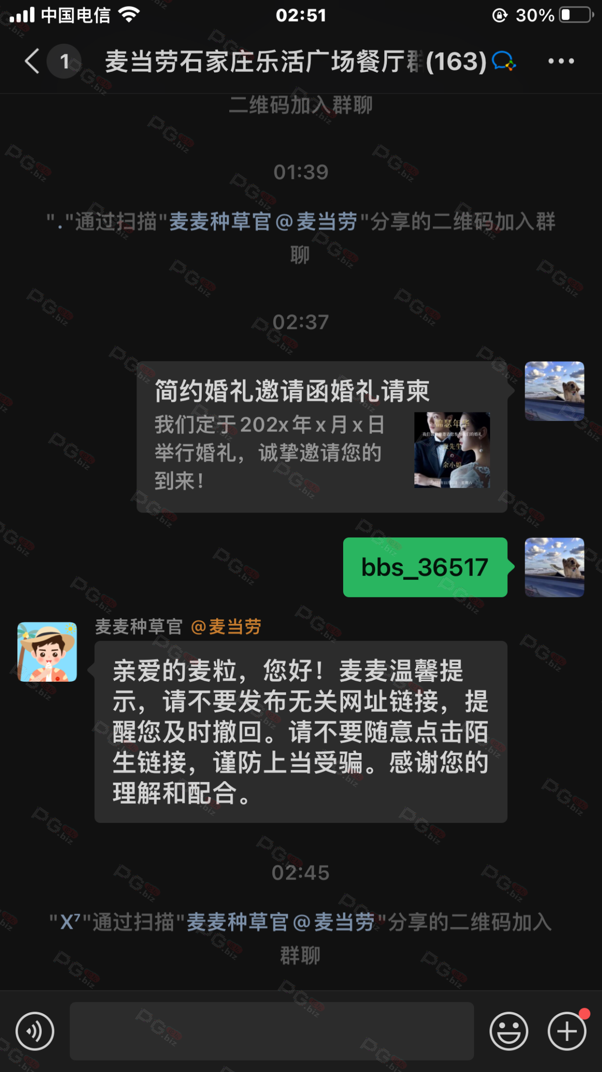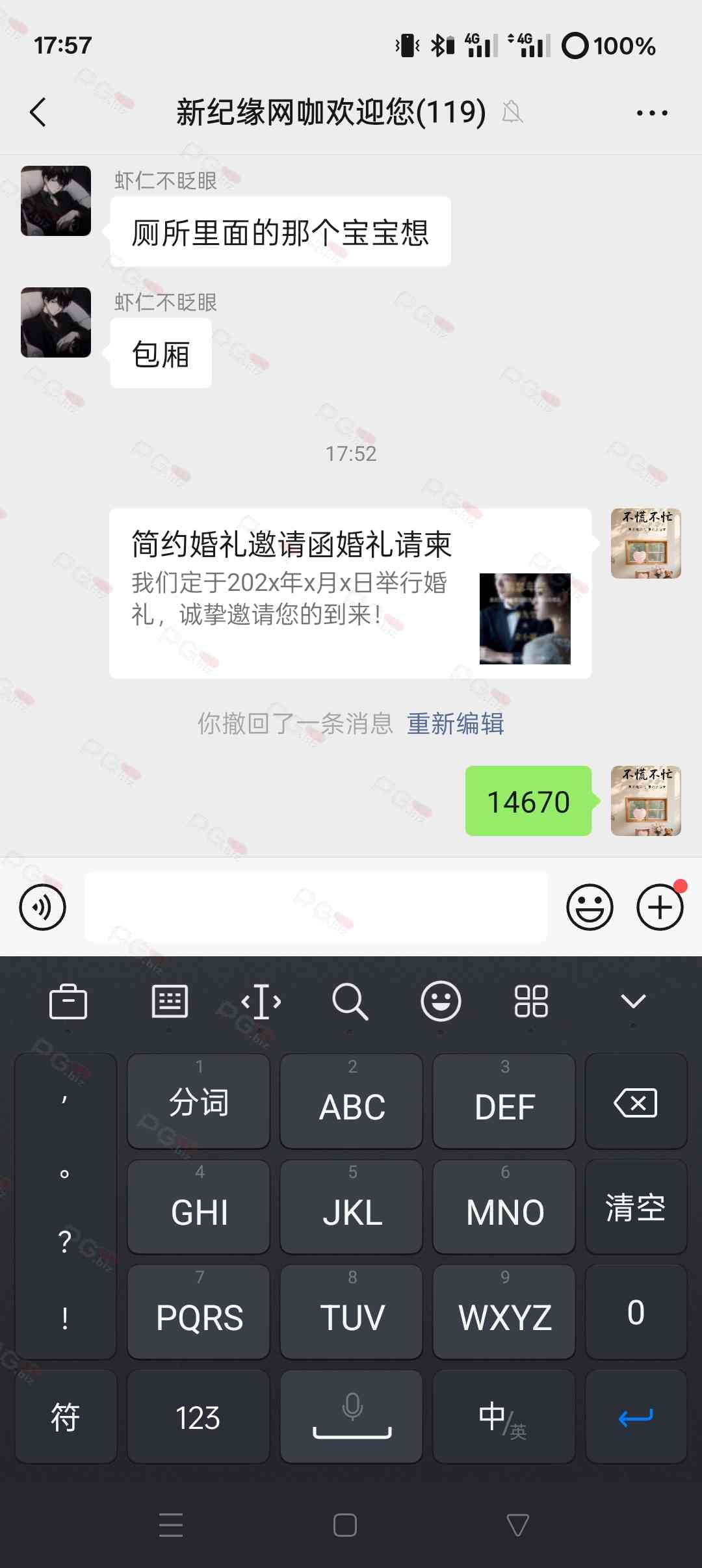 由于是国庆现金回馈的关系,幸运星要求的这些步骤其实不是很严格,不要求你们出示视频等证明,只是希望大家能开开心心的一起领个回礼,所以希望各位兄弟们也别造假,这些只是普通的婚礼邀请函,别搞假的或者搞了隐藏或撤回什么的,介绍多点新会员来,刚好能参与这场世纪婚礼,一起得到PG论坛的现金回馈18元回礼