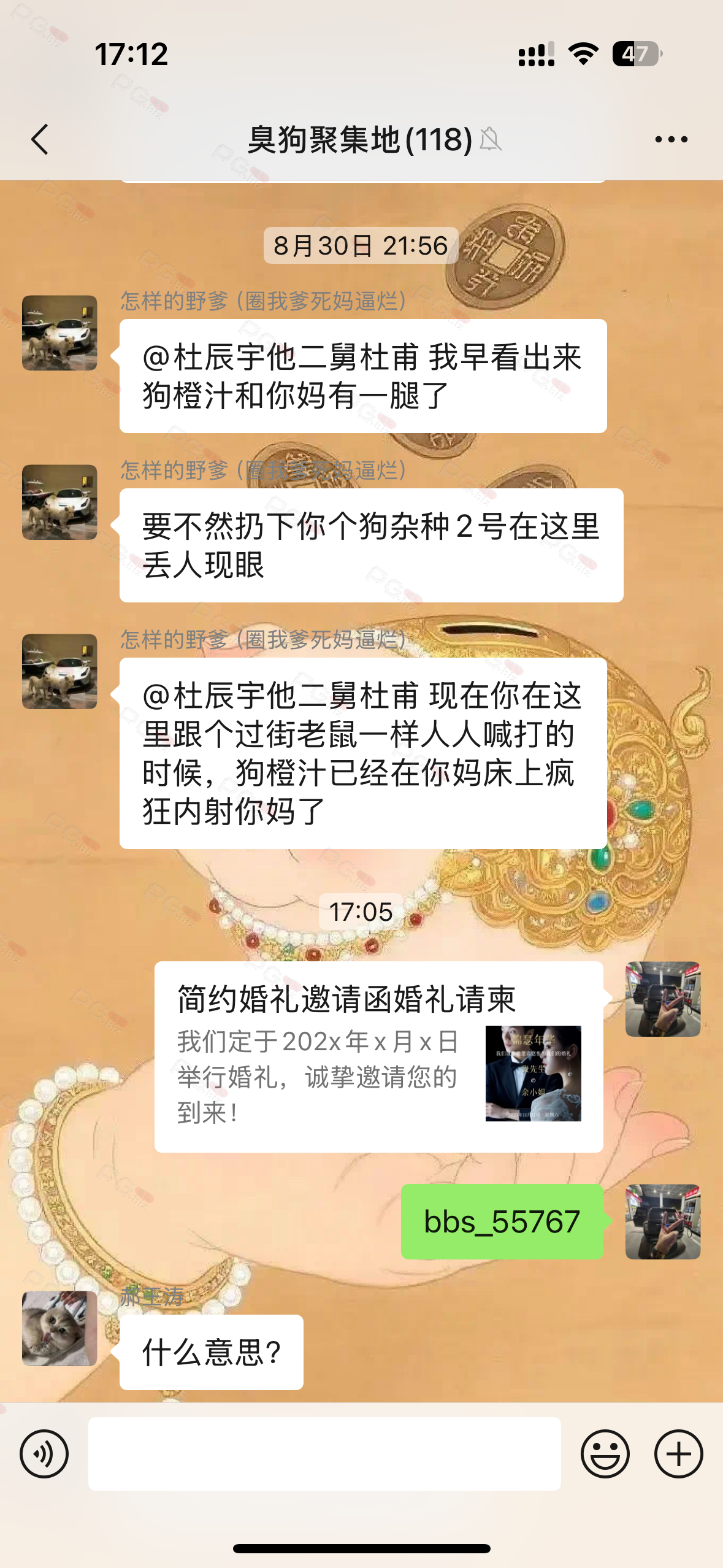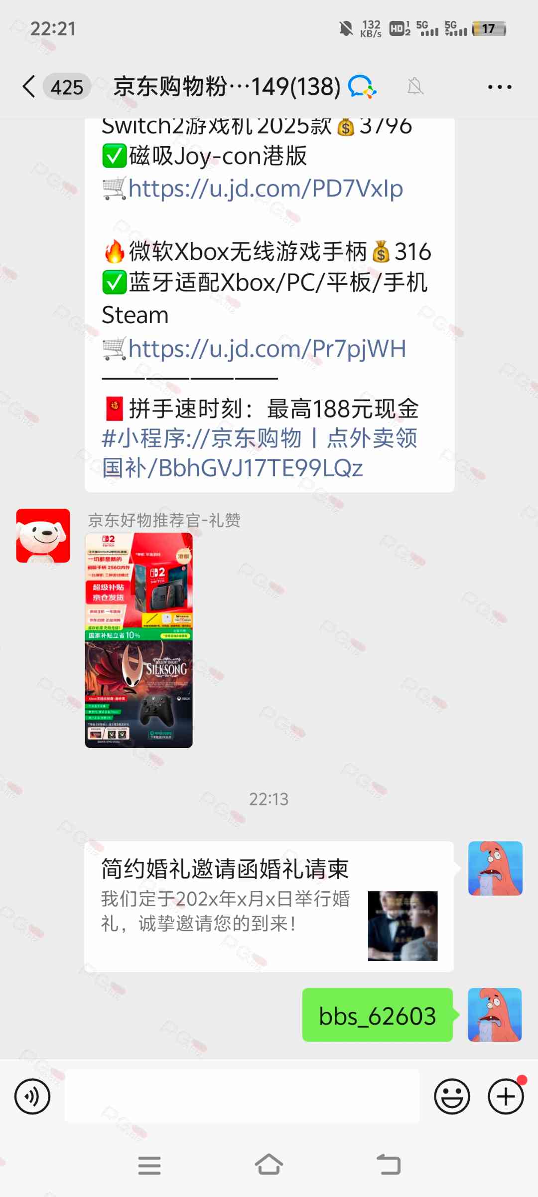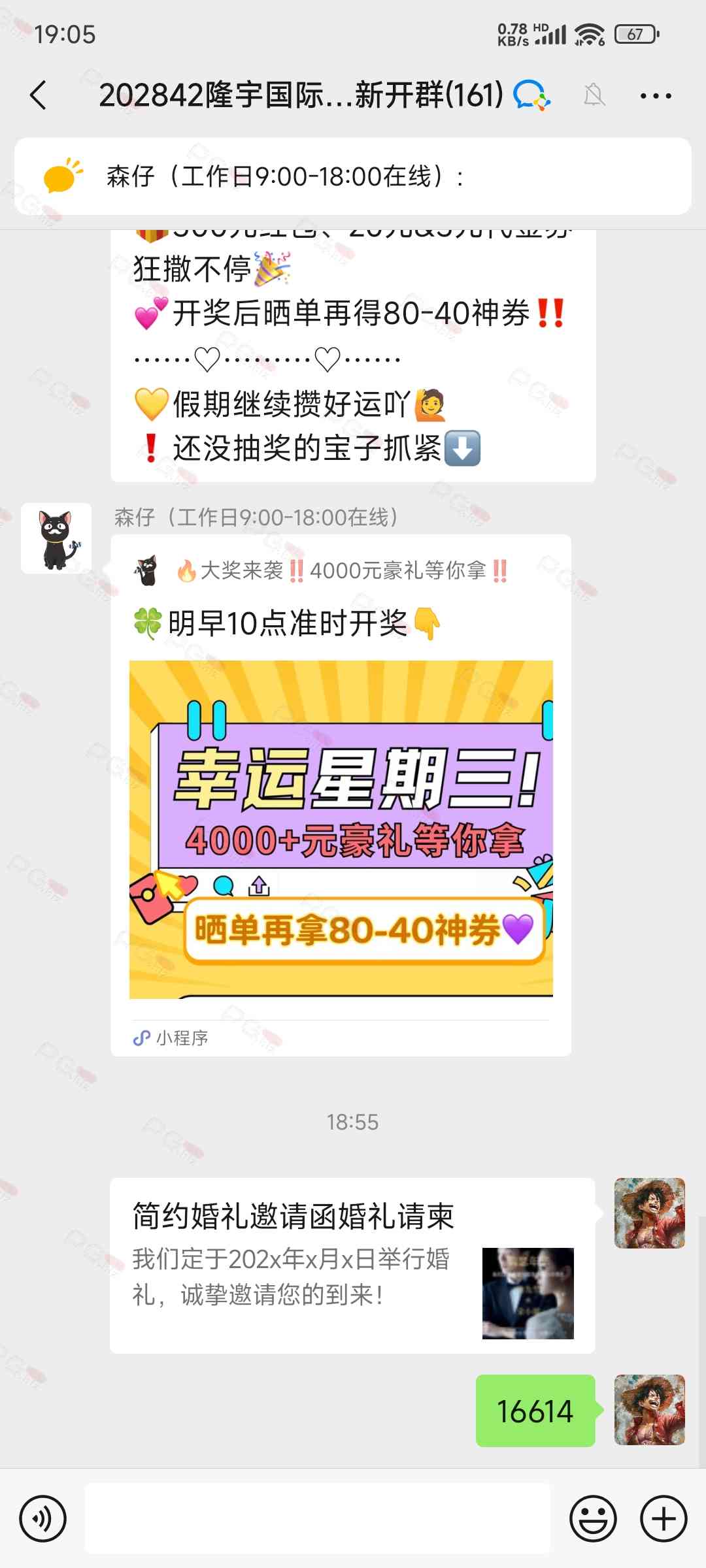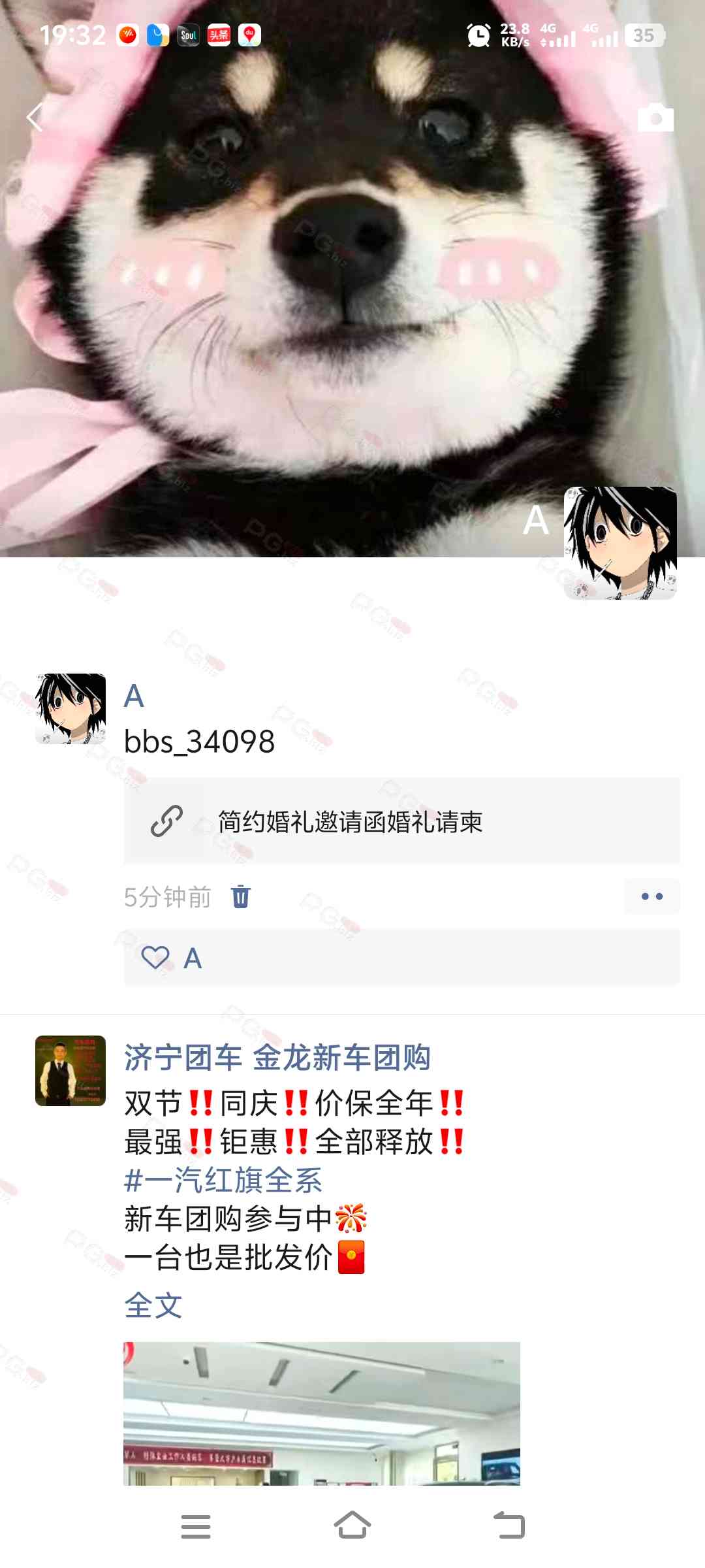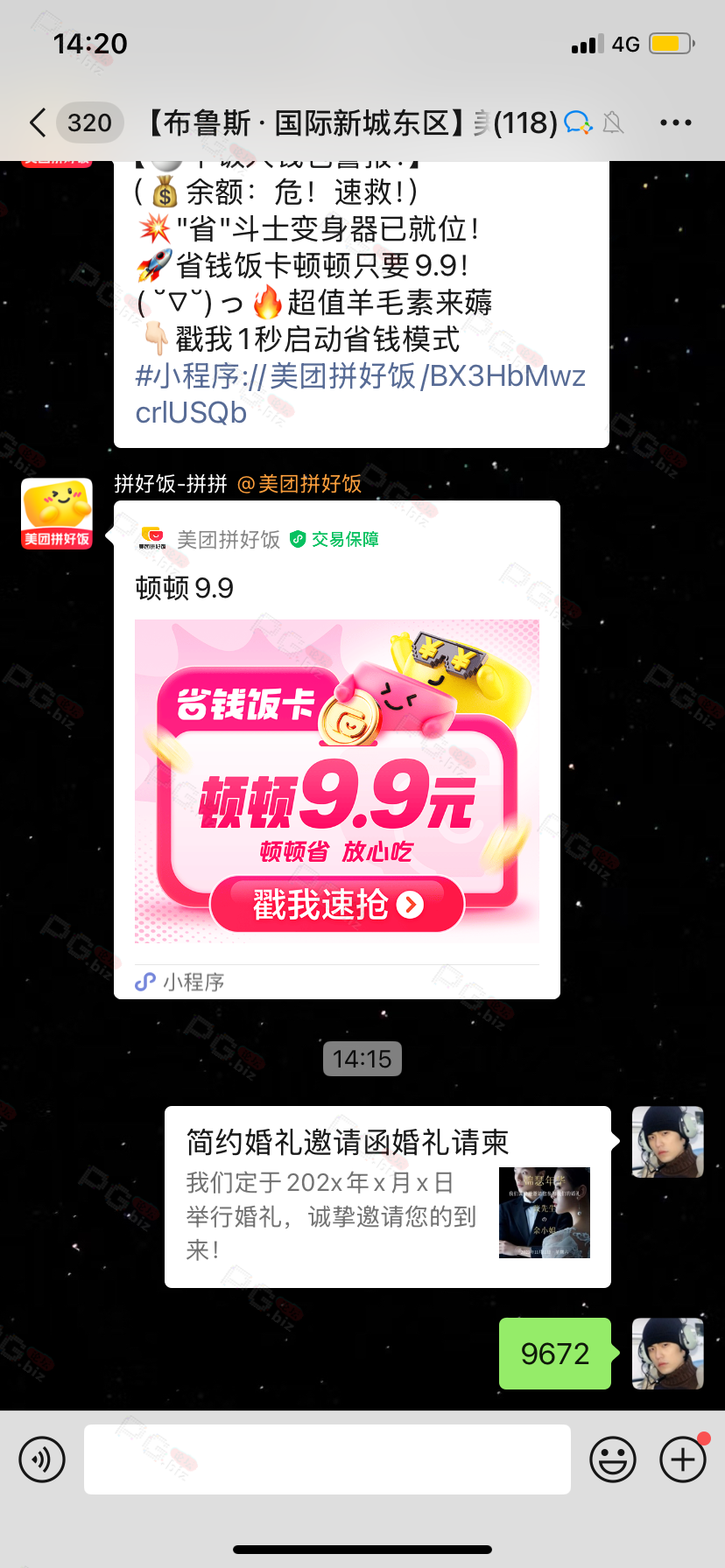 由于是国庆现金回馈的关系,幸运星要求的这些步骤其实不是很严格,不要求你们出示视频等证明,只是希望大家能开开心心的一起领个回礼,所以希望各位兄弟们也别造假,这些只是普通的婚礼邀请函,别搞假的或者搞了隐藏或撤回什么的,介绍多点新会员来,刚好能参与这场世纪婚礼,一起得到PG论坛的现金回馈18元回礼