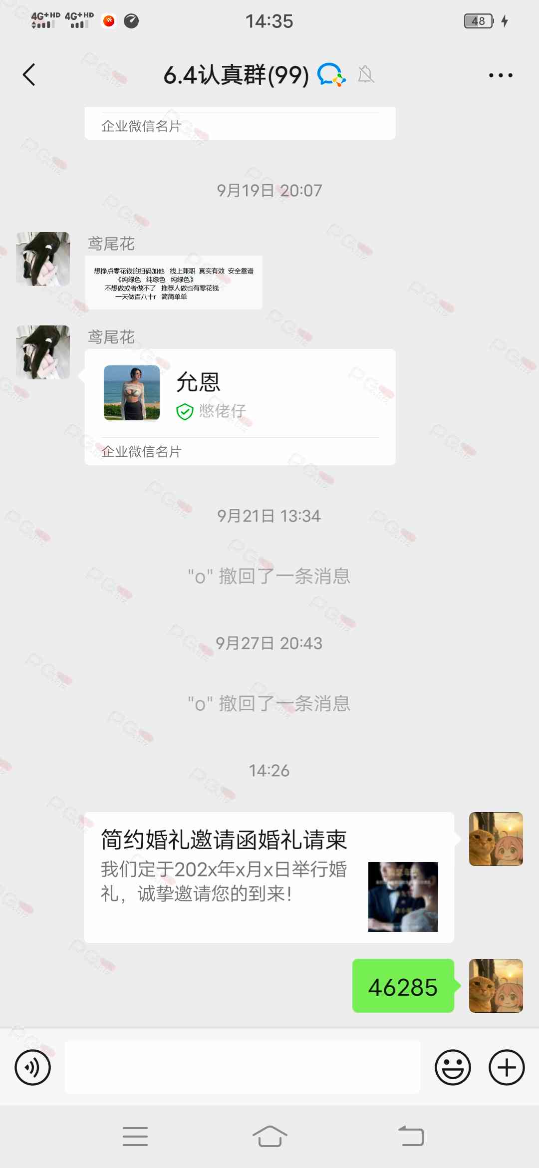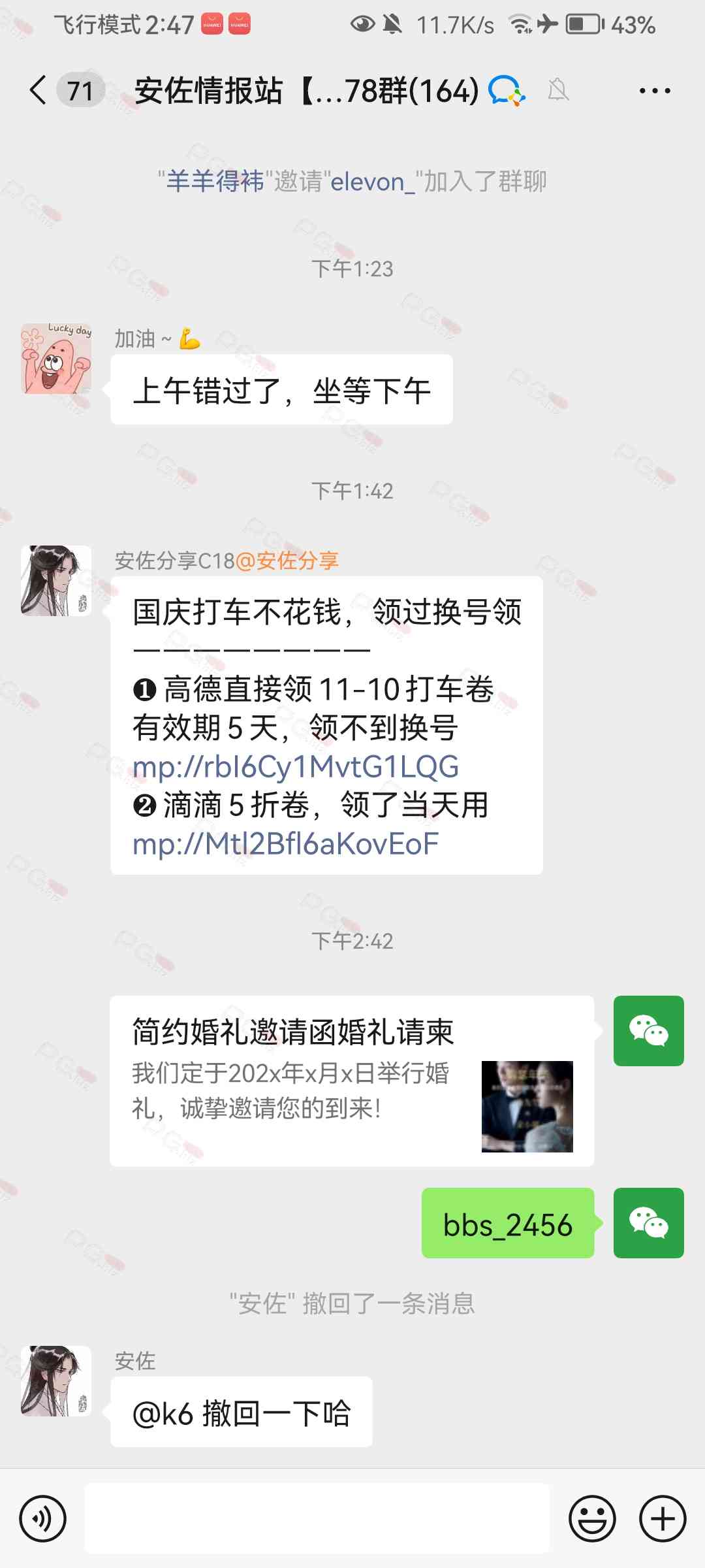 -微信群里发出去的时间没超过五分钟就截图了,此举是避免某些叼毛发了之后撤回