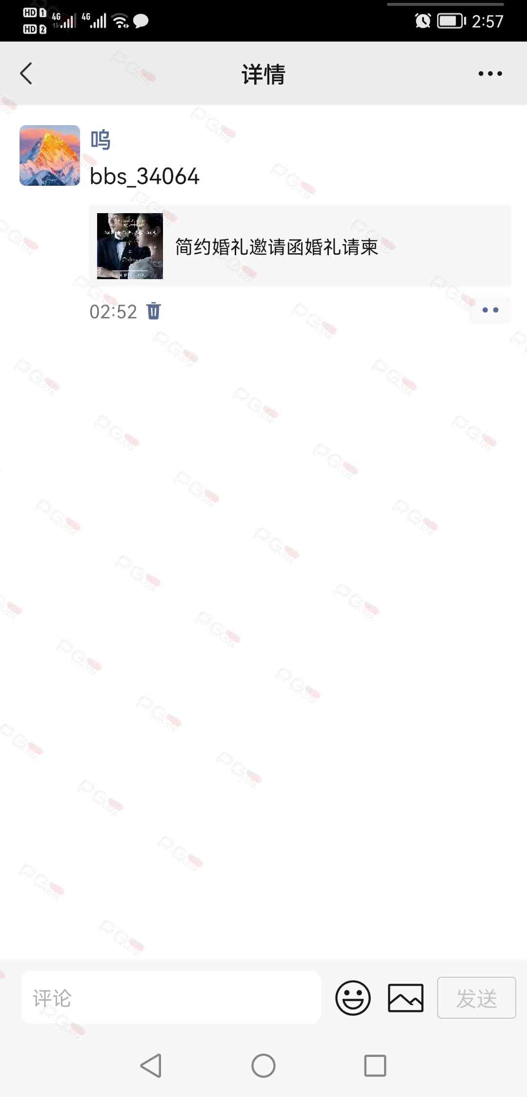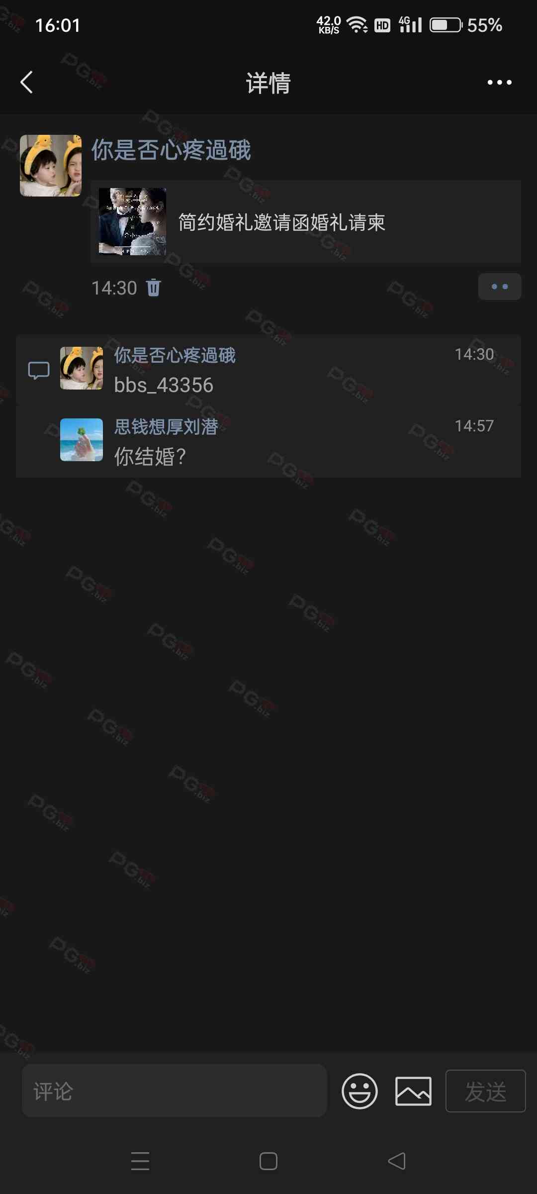 -朋友圈和微信群里面没留言你们的论坛ID,以避免某些叼毛偷别人的图直接来用