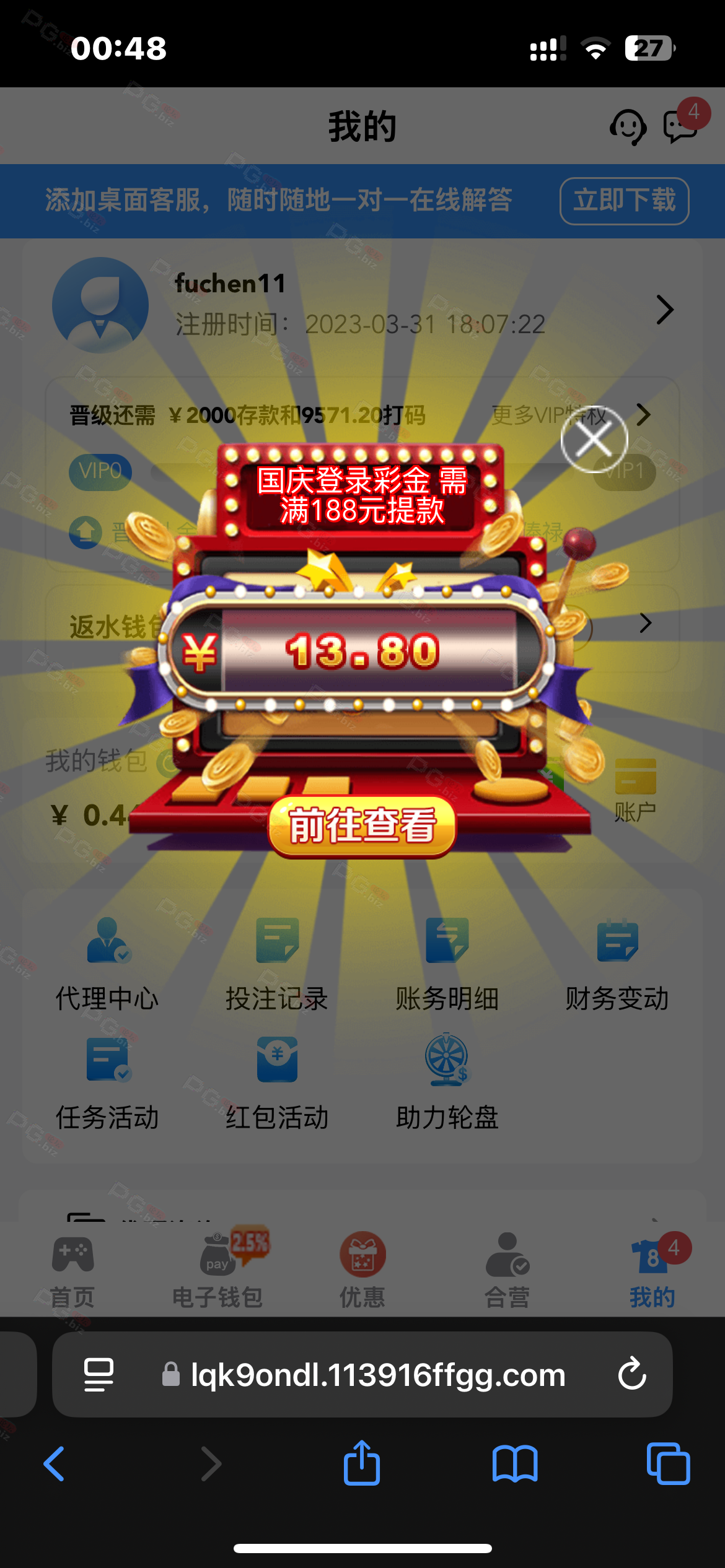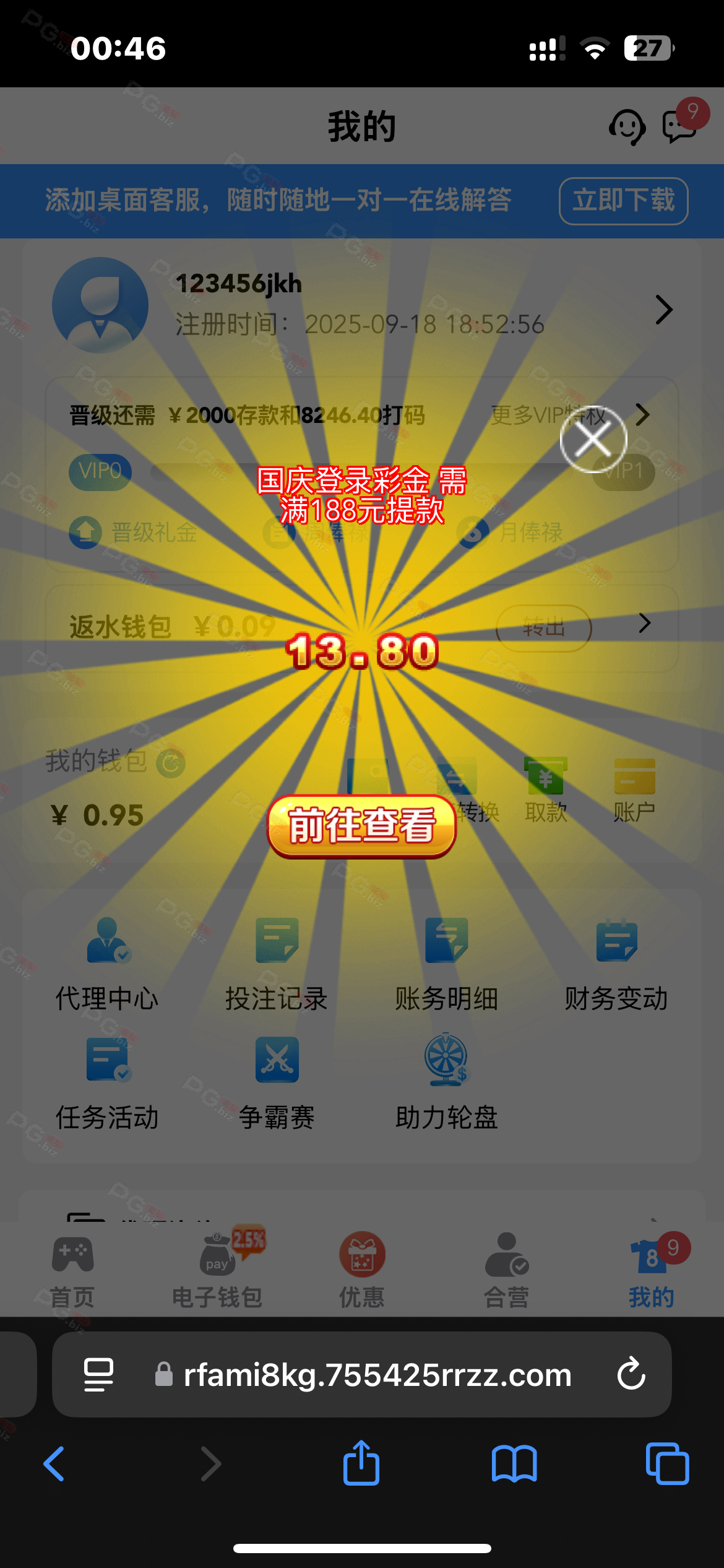 撸成功的老哥,请跟客服说您是从PG论坛 【PG.Biz】过来的。