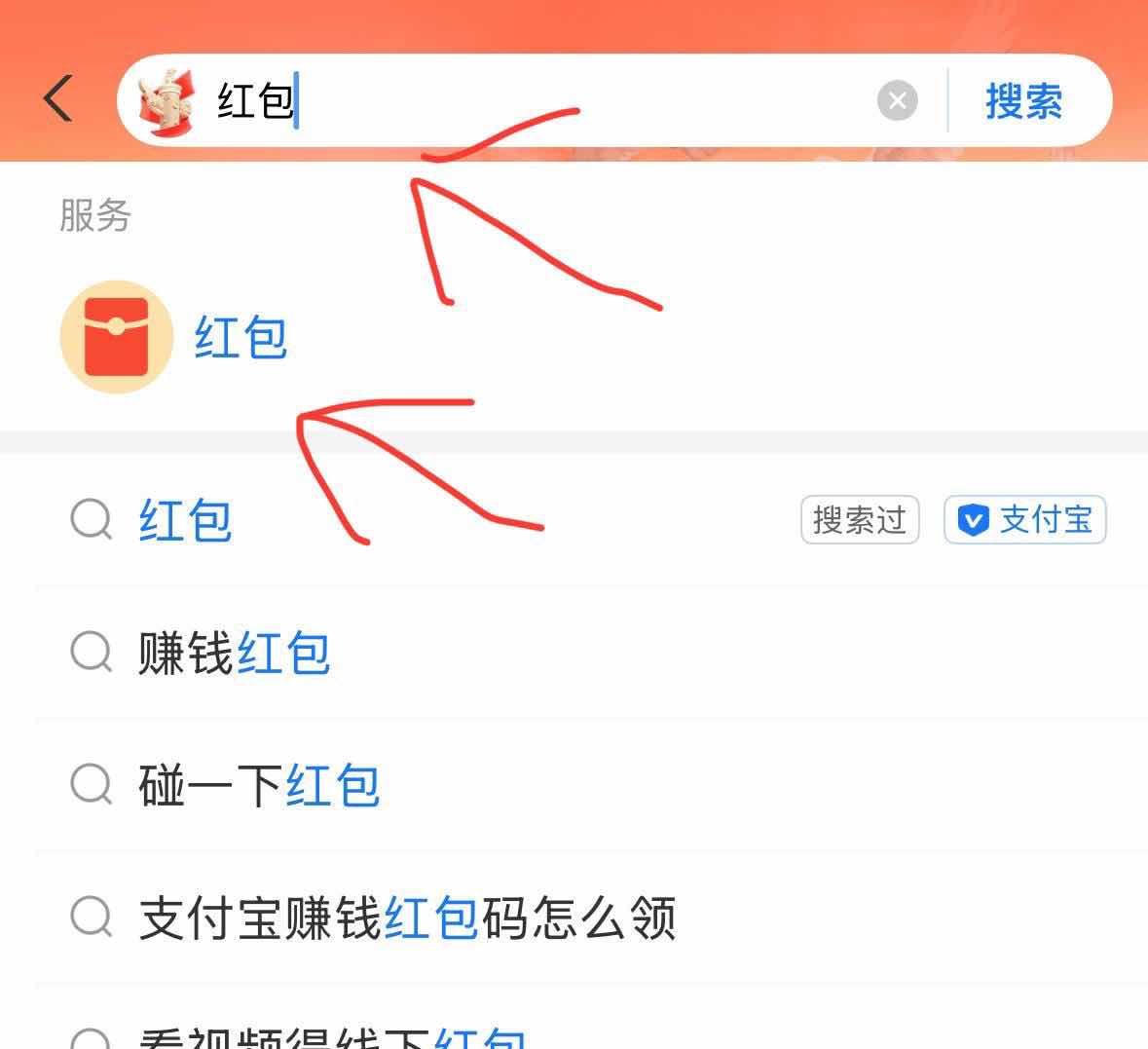 支付宝搜索栏输入红包