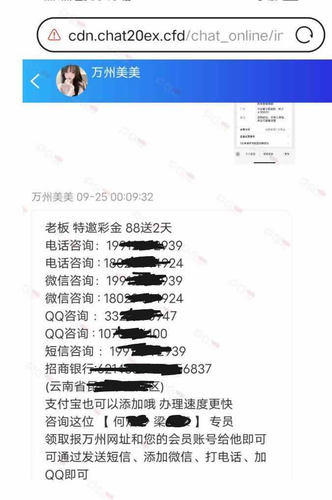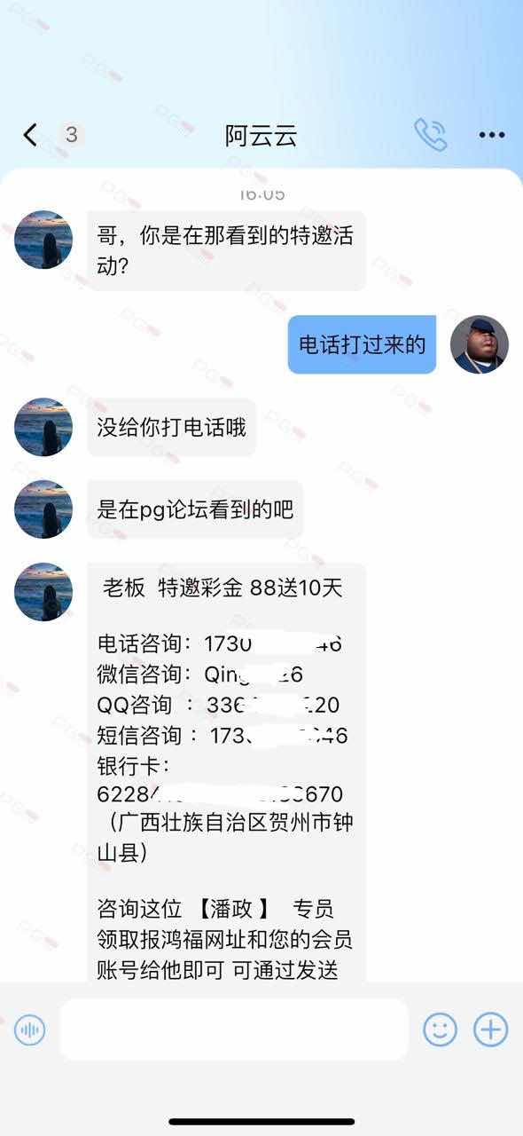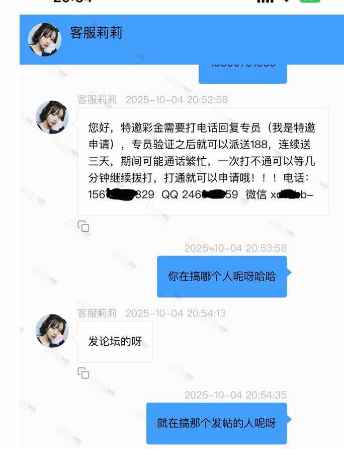 大家好,我是幸运星,近来受到了一些兄弟们的反馈,他们发了关于这三个站点的白菜,结果反而被客服曝光他们的私人信息出来,让他们要彩金就联系他们的手机号码/微信/QQ等联系方式,兄弟们免费替他们宣传,他们反而把兄弟们的私人信息,名字和联系方式都曝光,实属没格局,为此请大家别再发任何关于这三个平台的彩金,以免自己的私人信息反而被人拿去曝光,这种会把会员的个人隐私的身份信息随意曝光出去的台子,大家可要警惕了,最后幸运星祝大家国庆快乐,中秋快乐,谢谢大家对PG论坛的支持!