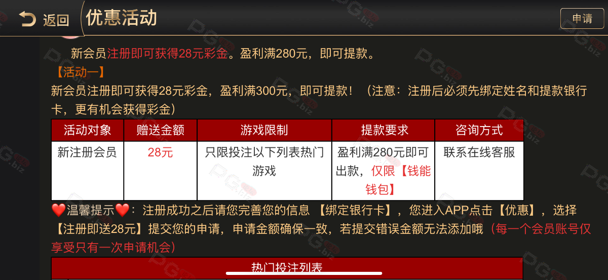 撸成功的老哥,请跟客服说您是从PG论坛 【PG.Biz】过来的。