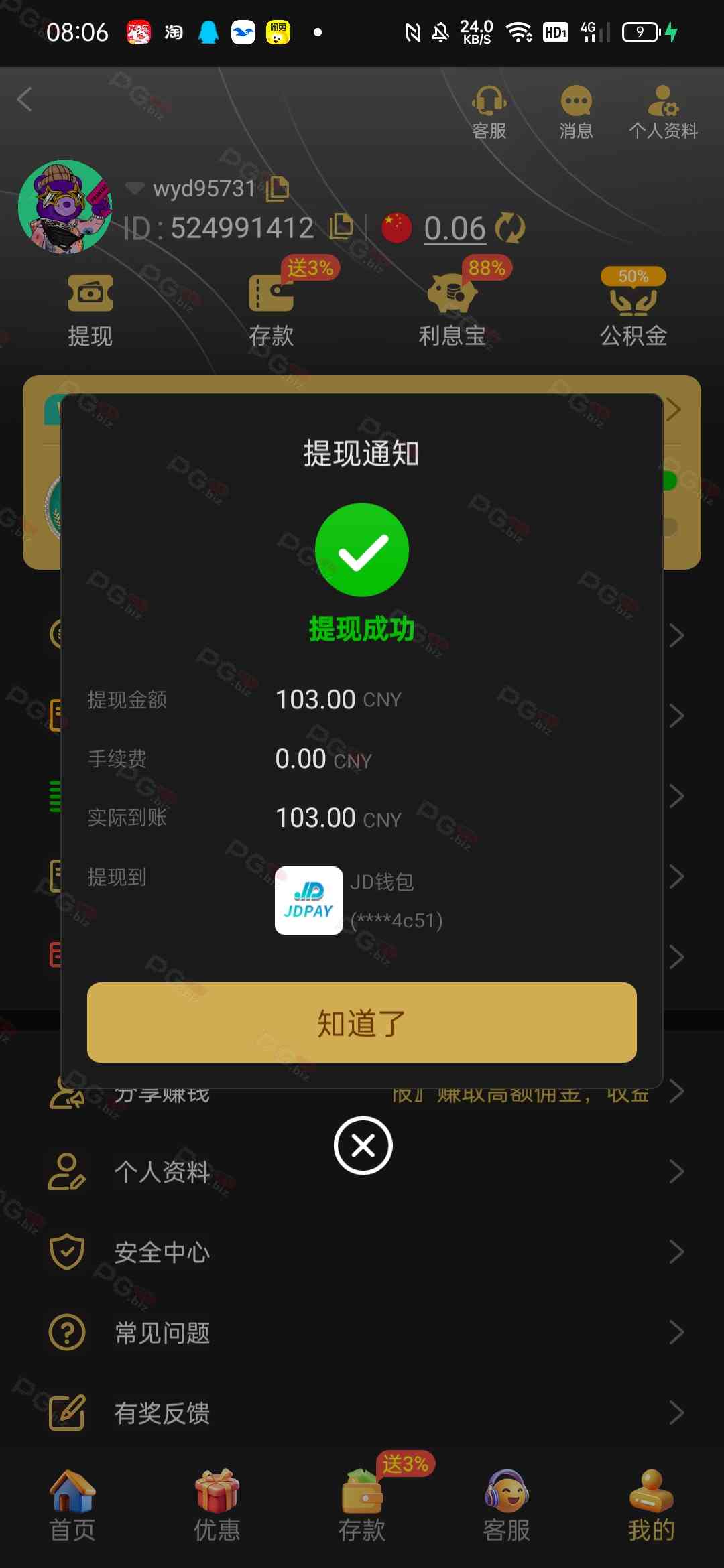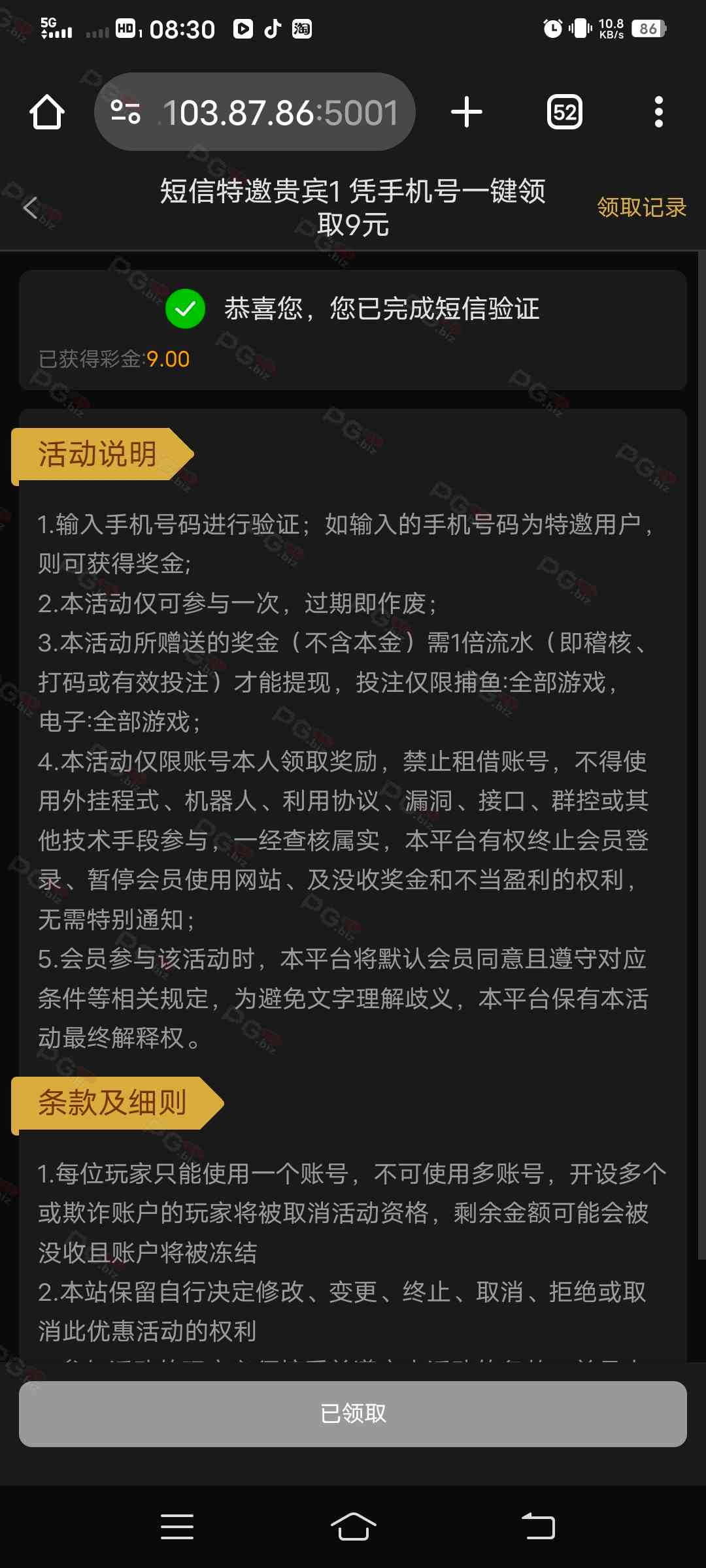 撸成功的老哥,请跟客服说您是从PG论坛 【PG.Biz】过来的。