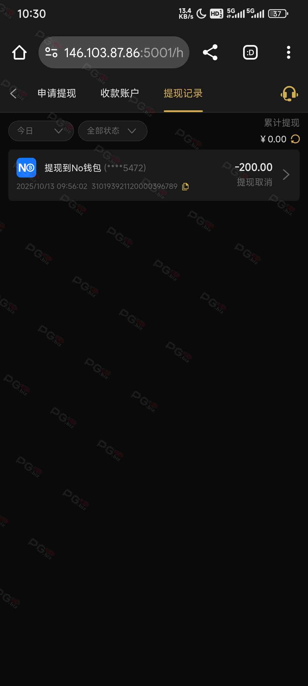 操你妈逼的,纯黑台不给提现。冲了100一分彩金没领都黑!!!