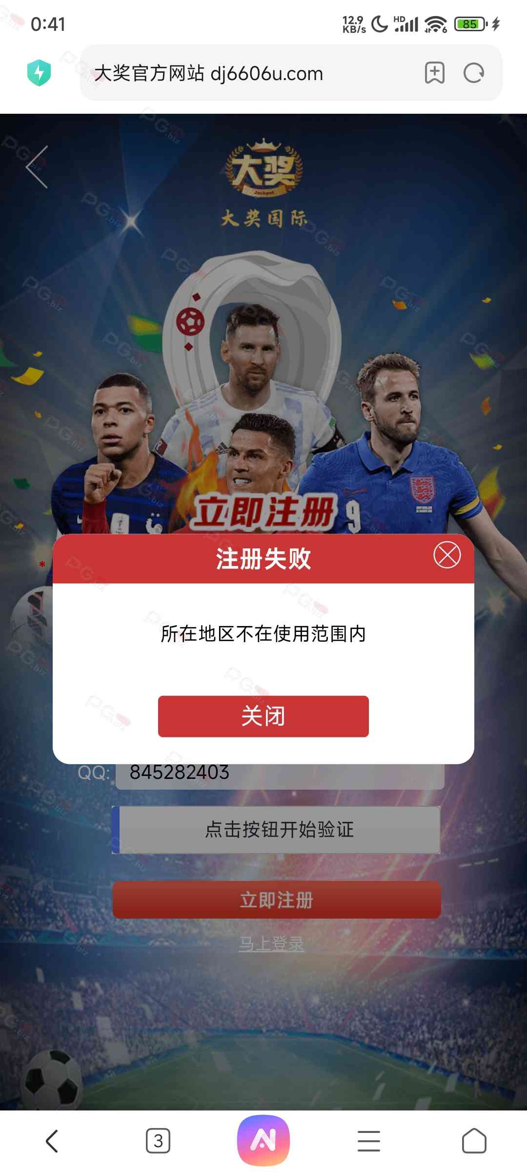 不在注册范围 去找客服要备用域名 不过我提醒一下 我绑定手机号 收不到验证码 收不到就等于领不到注册彩金