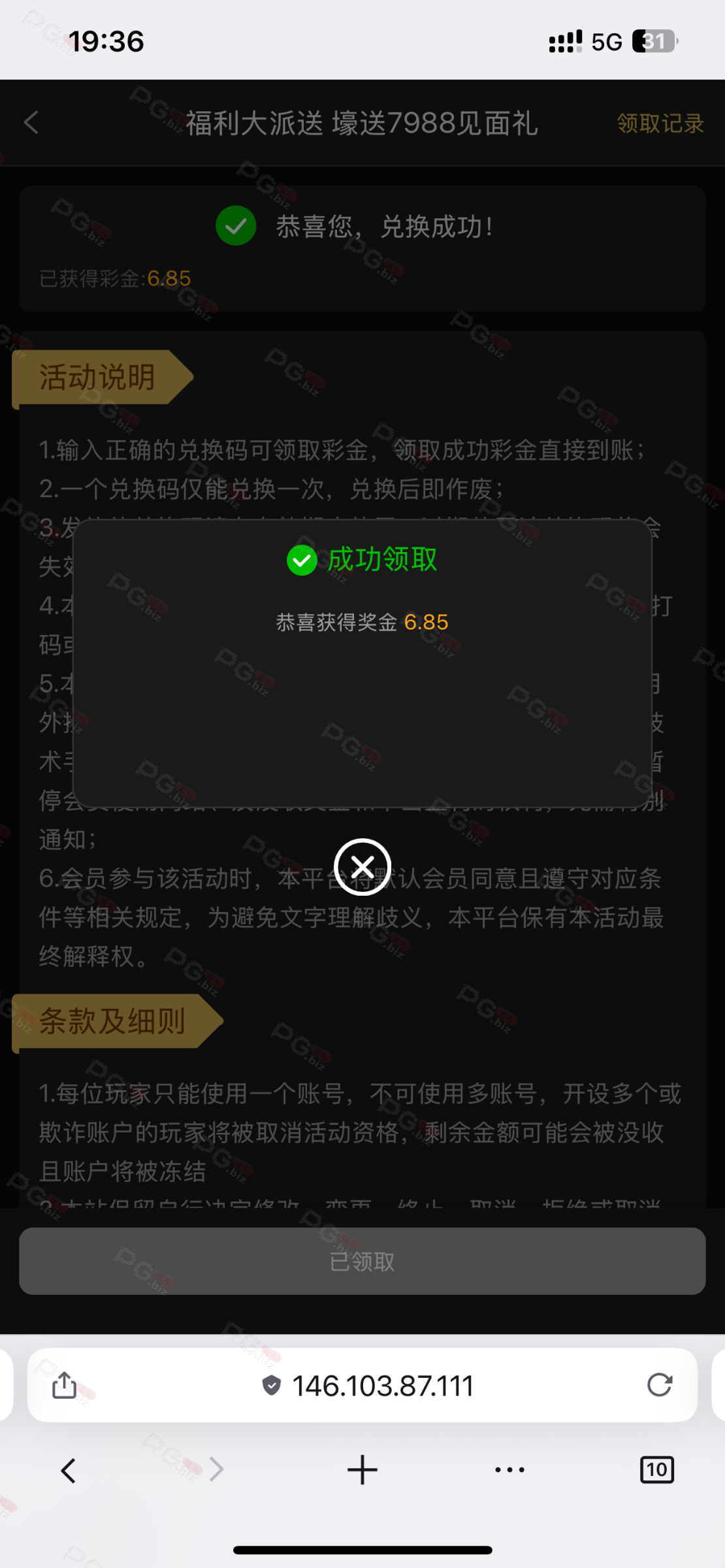 撸成功的老哥,请跟客服说您是从PG论坛 【PG.Biz】过来的。