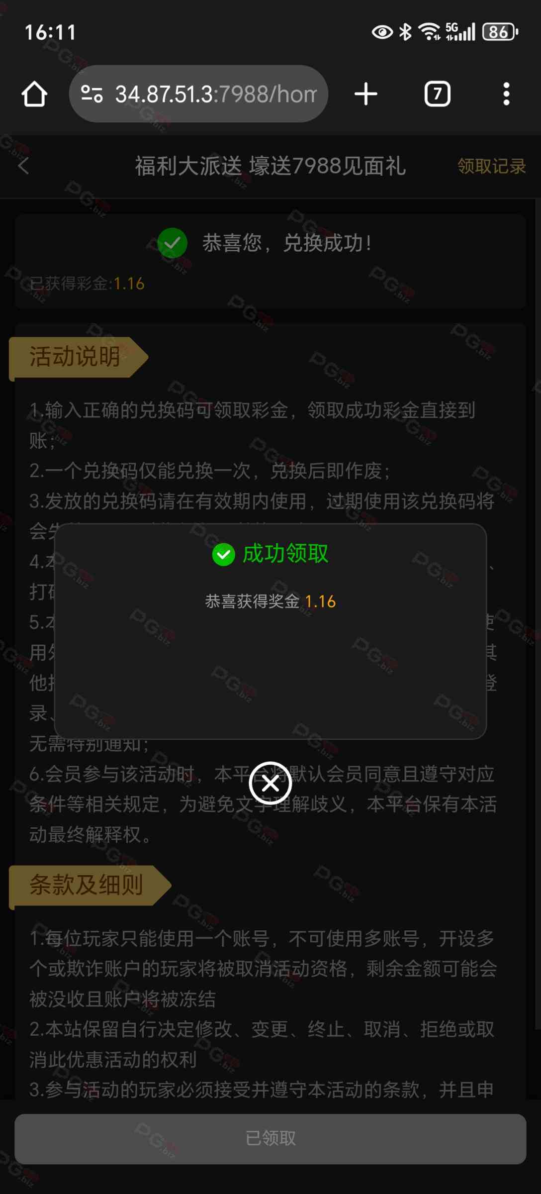 撸成功的老哥,请跟客服说您是从PG论坛 【PG.Biz】过来的。