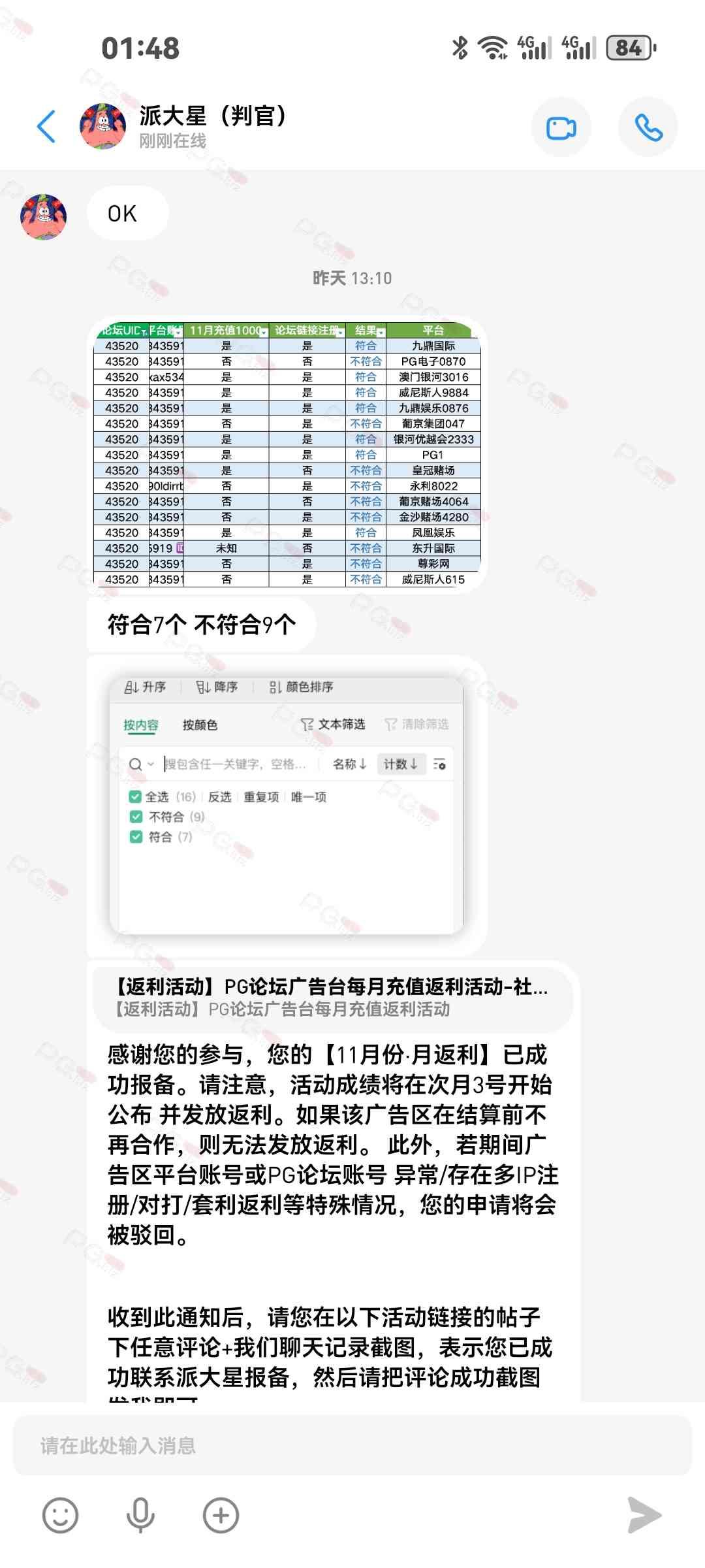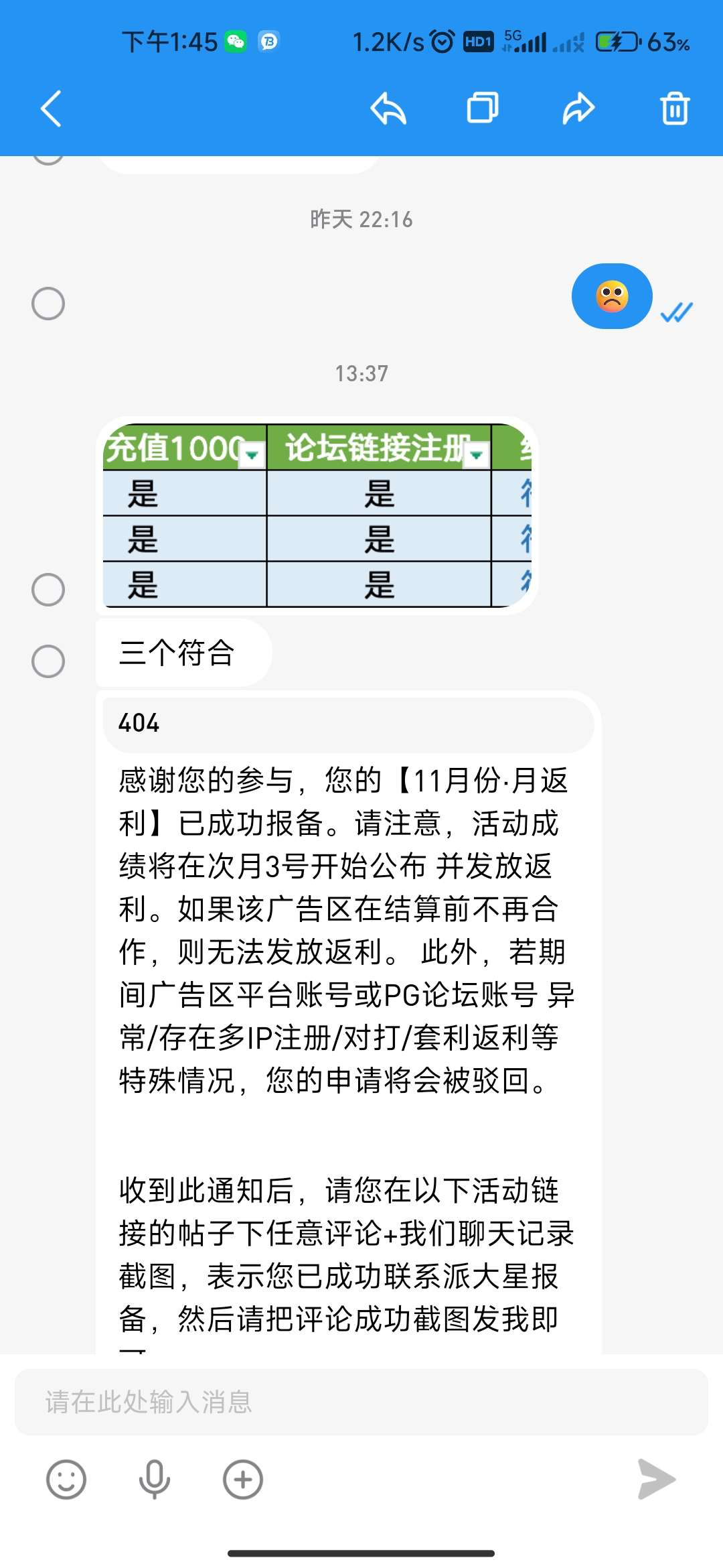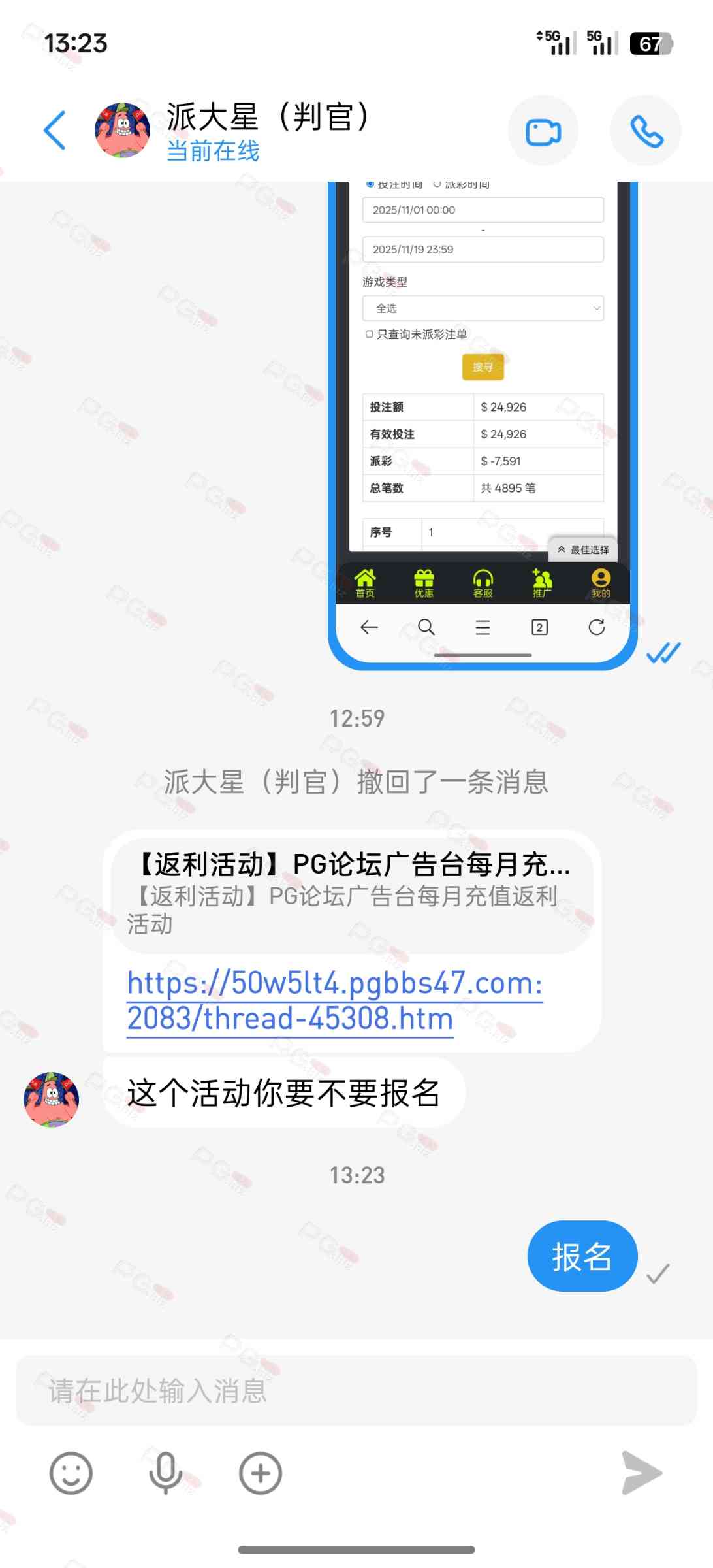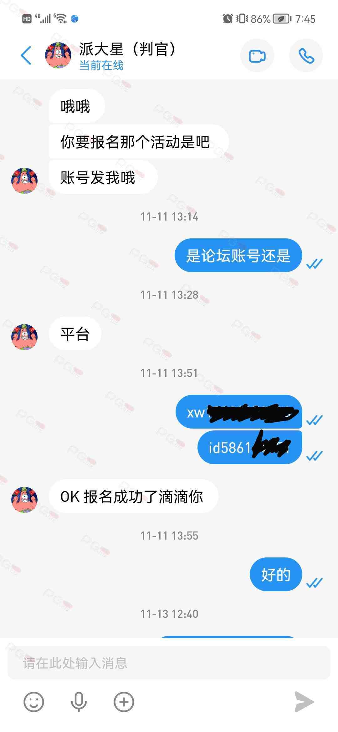 3.向派大星申请后,需要派大星跟狗庄确认是否走论坛链接,充值是否达标,核对后他会告知你是否成功报备,才算有效报备