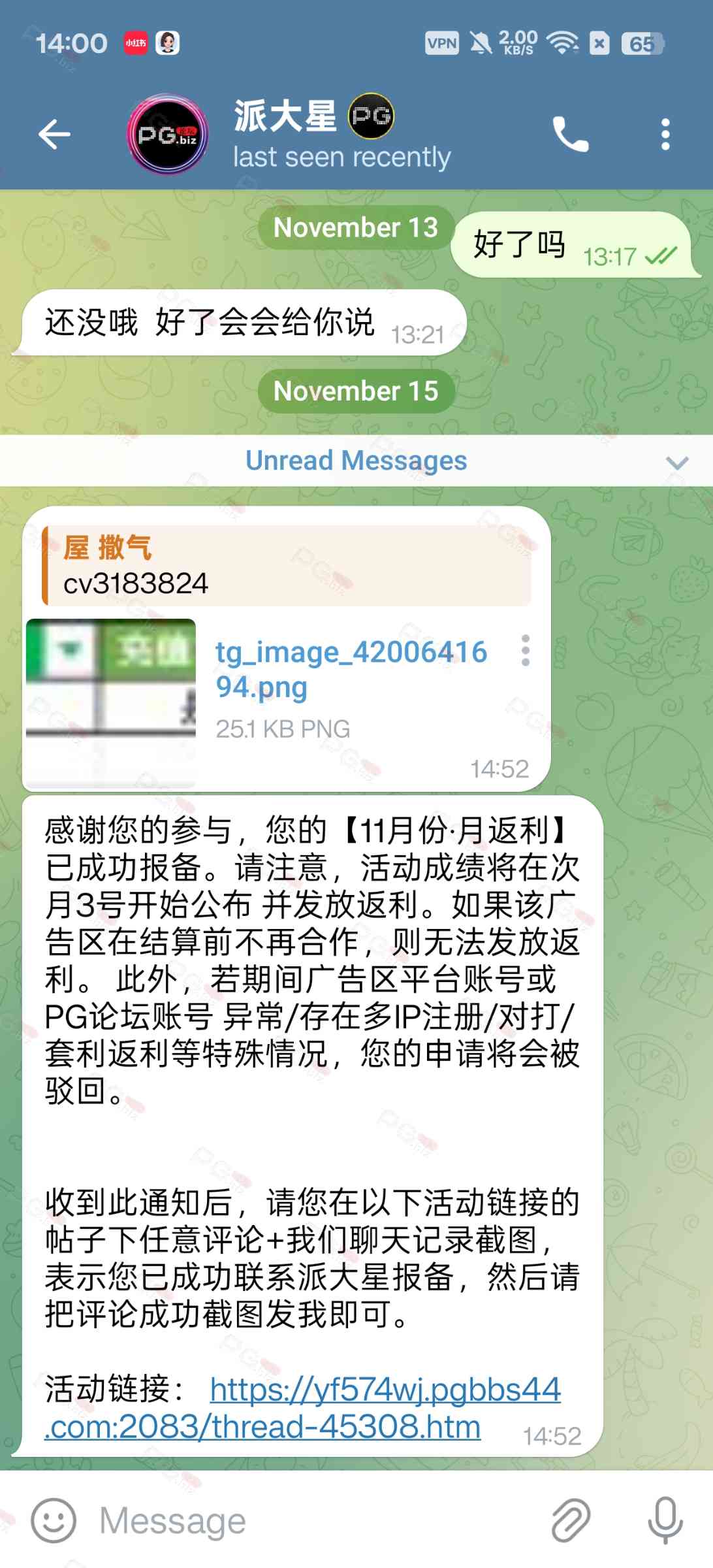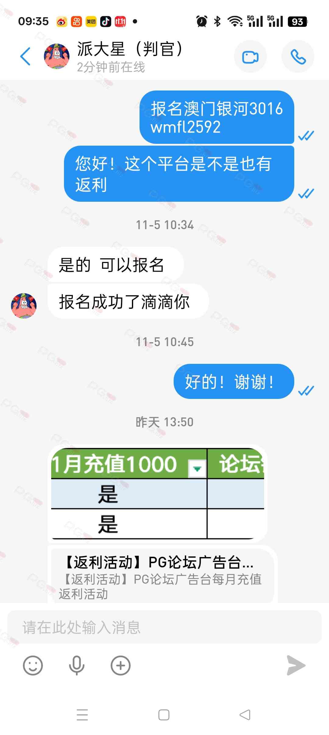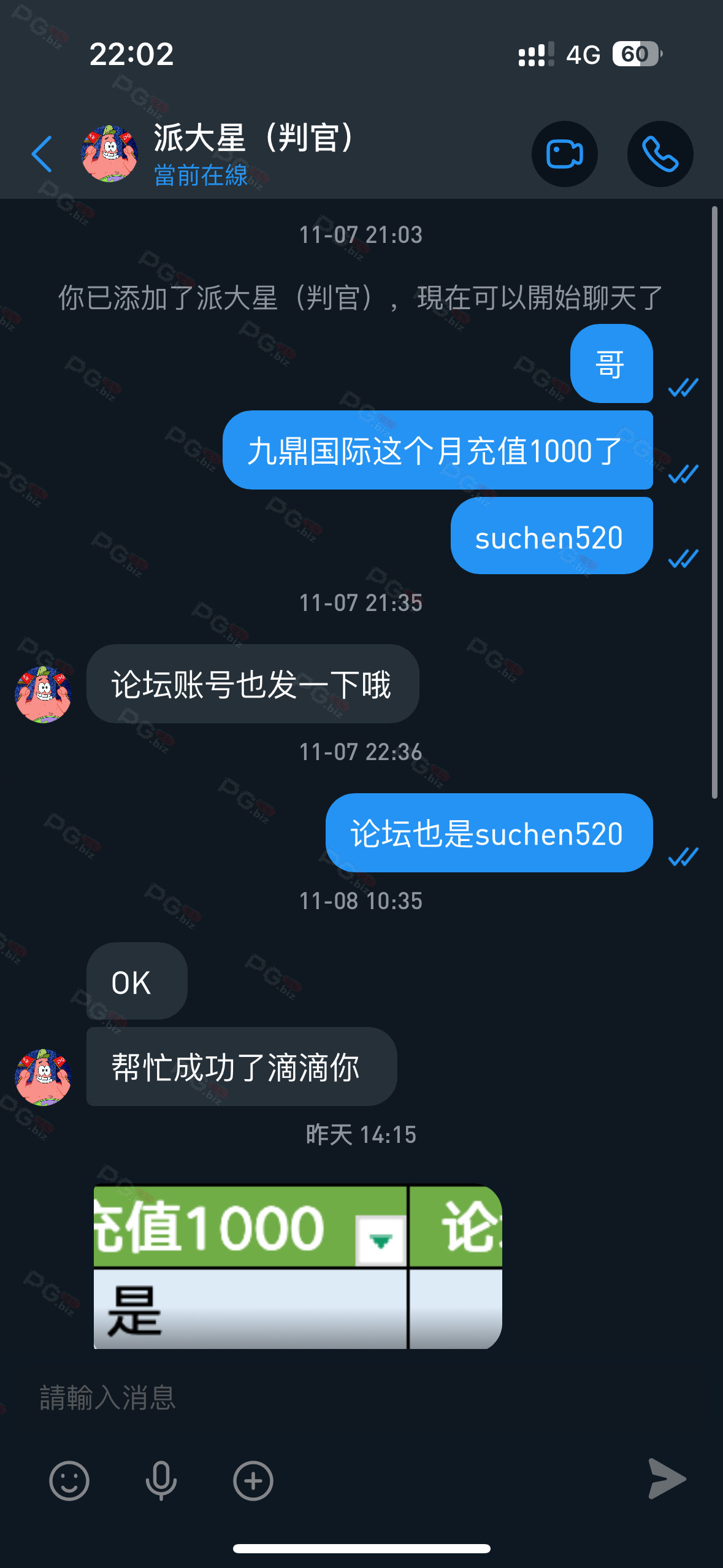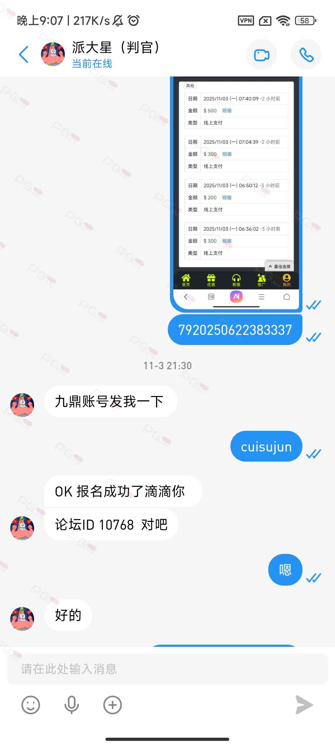 3.向派大星申请后,需要派大星跟狗庄确认是否走论坛链接,充值是否达标,核对后他会告知你是否成功报备,才算有效报备