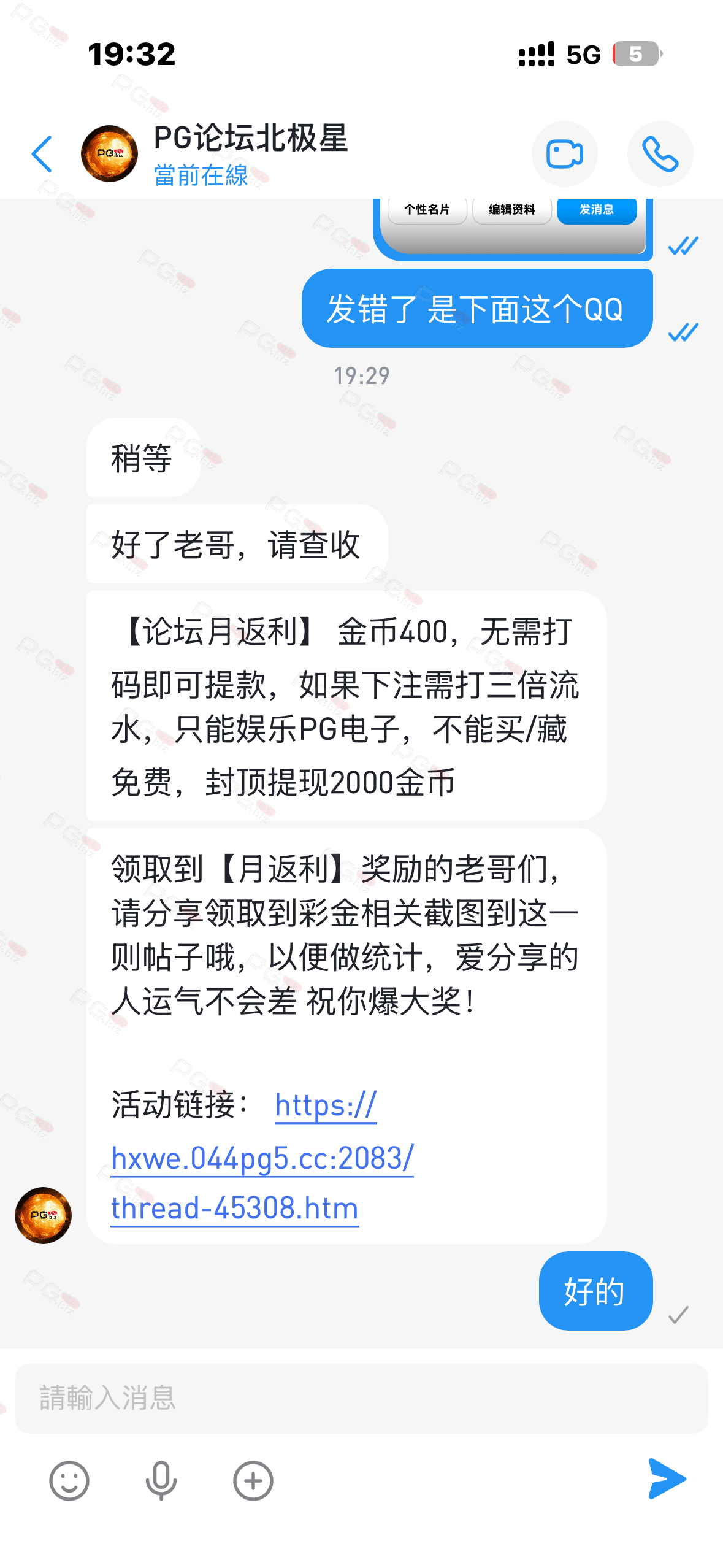 撸成功的老哥,请跟客服说您是从PG论坛 【PG.Biz】过来的。
