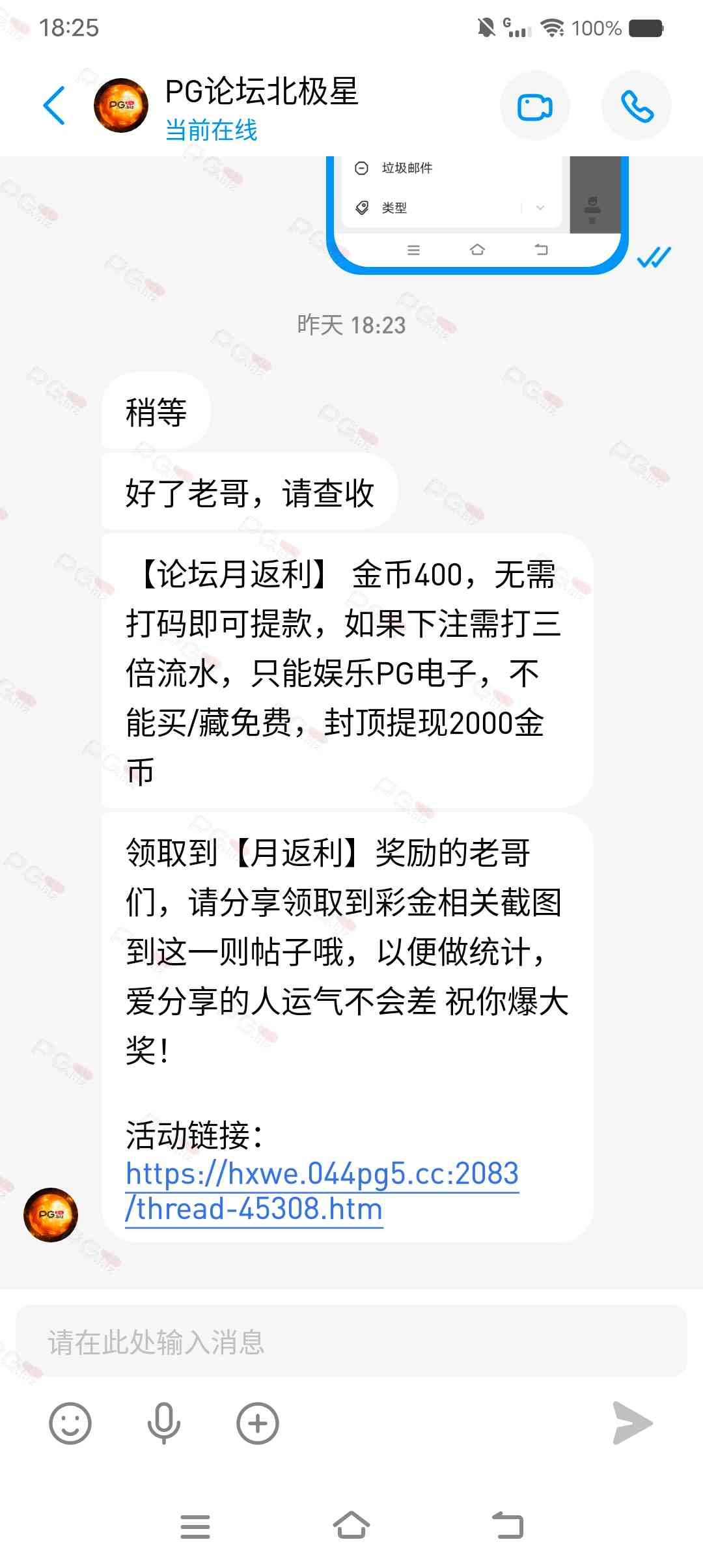 7.返利将会以钱能派发,如果没有钱能的可以兑换为PG娱乐金币400,无需打码即刻提款