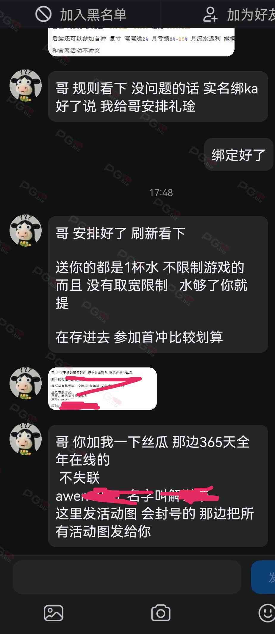 撸成功的老哥,请跟客服说您是从PG论坛 【PG.Biz】过来的。