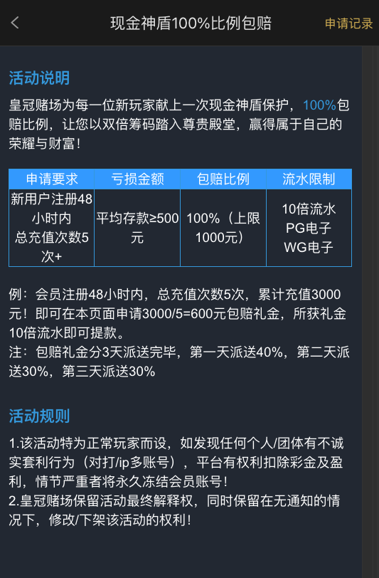 皇冠赌场 返现活动 [已结束]